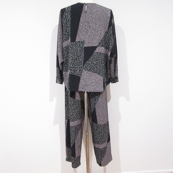 ●商品名(タイトル):#anc シセンドウ 詩仙堂 セットアップ パンツスーツ ツーピース グレー 黒 ちりめん 総柄 日本製 レディース [975119]
