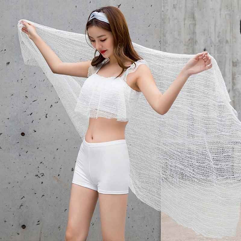 ハイウエストタイプのボクサーパンツで、お腹もお尻もカバー。巻きスカートは、風に揺れるたびに美しく舞い上がり、上品な印象に◎