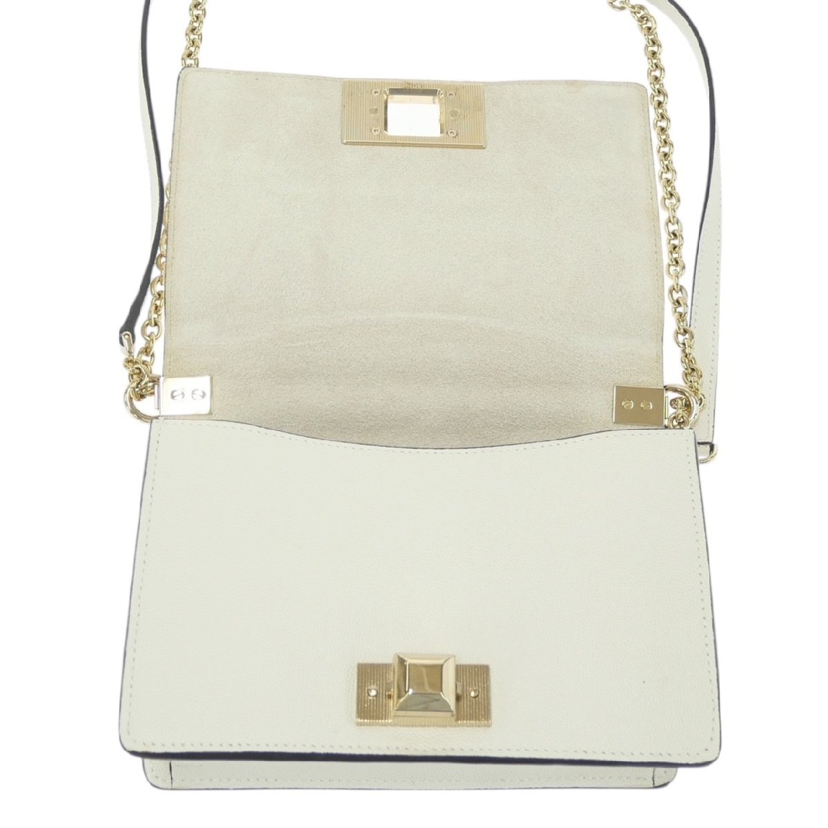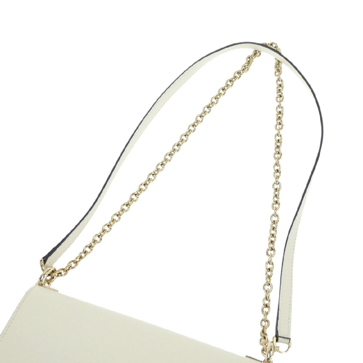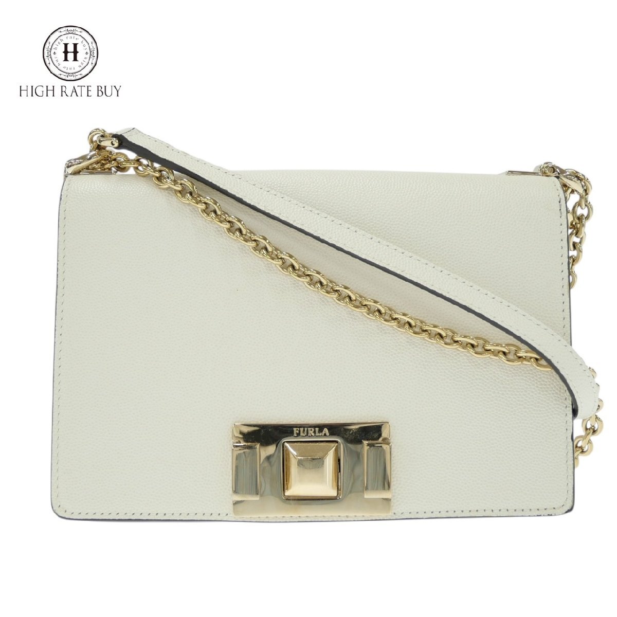 1円スタート FURLA フルラ レザー チェーンショルダーバッグ ゴールド金具 ブランドロゴ 肩掛け ホワイト 白 レディース