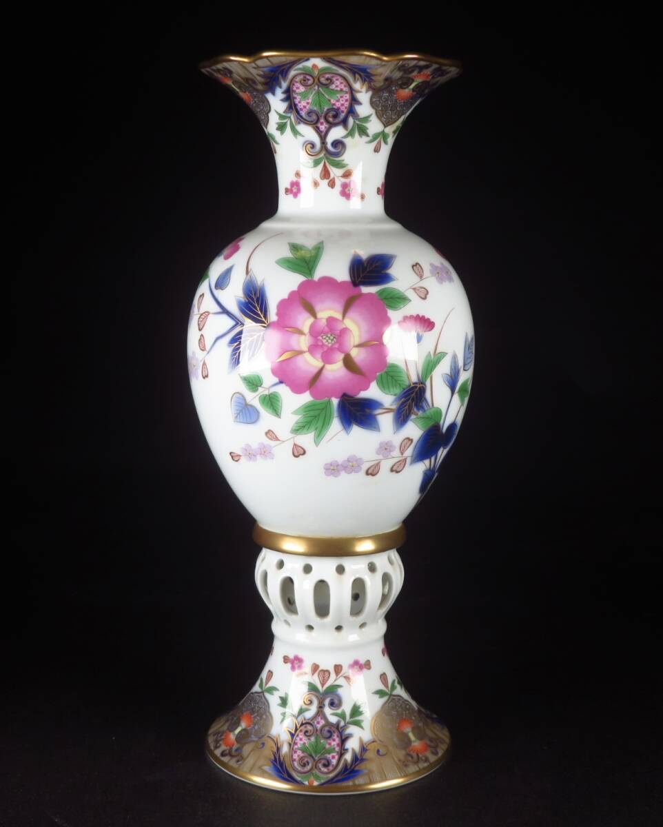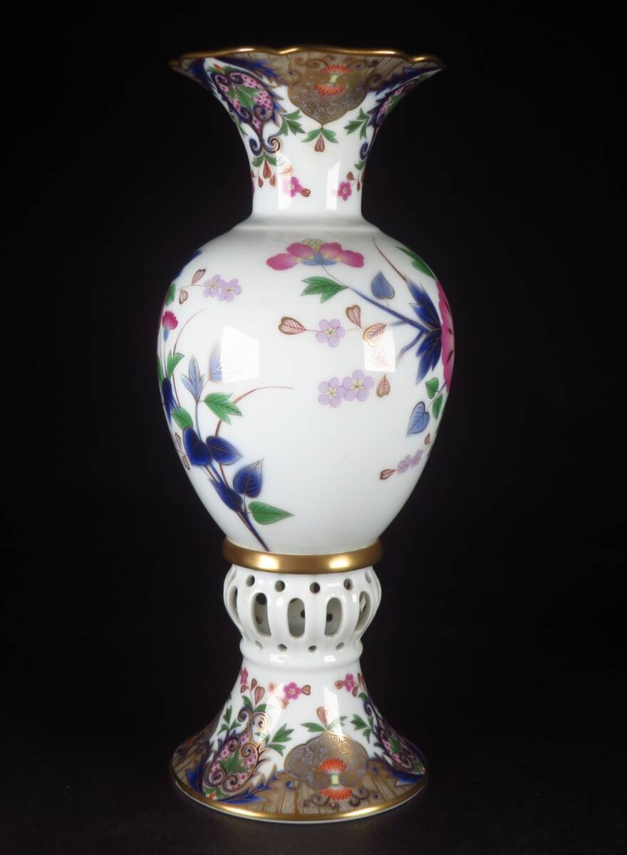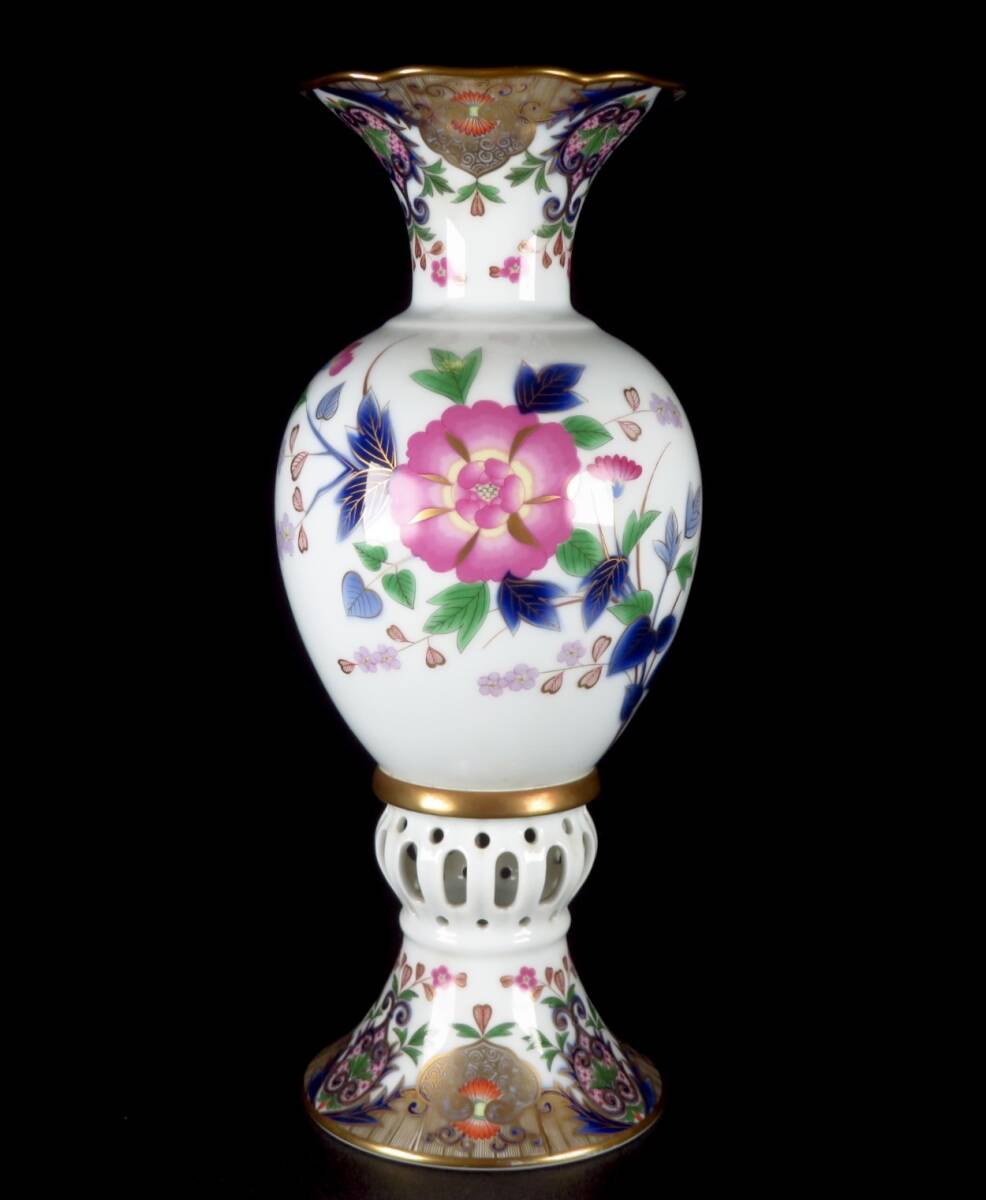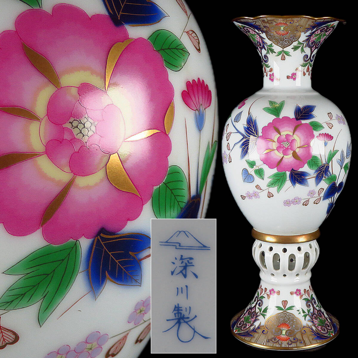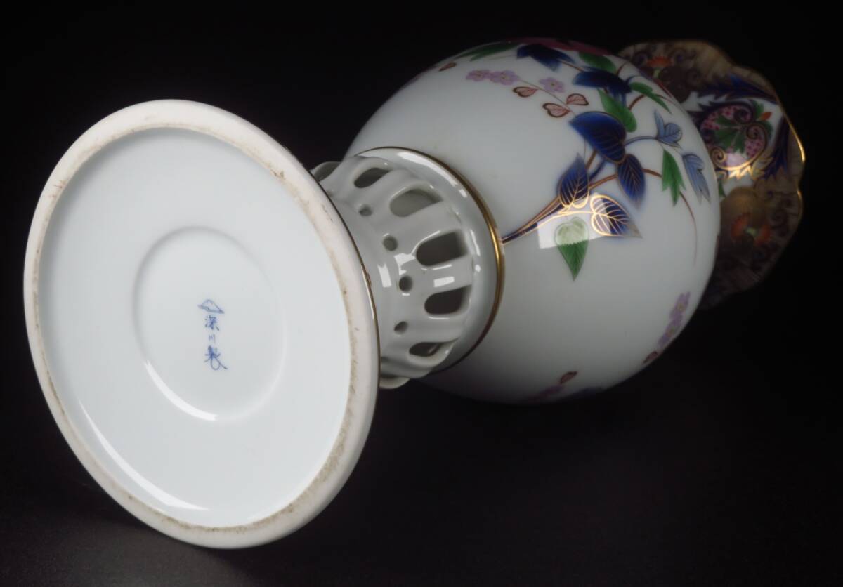 | 【SAKURAYA】豪華絢爛 最上位作【宮内庁御用達 深川製磁 金彩色絵草花文透彫飾壷】壷 飾壺 花瓶 オブジェ 置物 希少品 骨董品 高さ37.5cm | ||