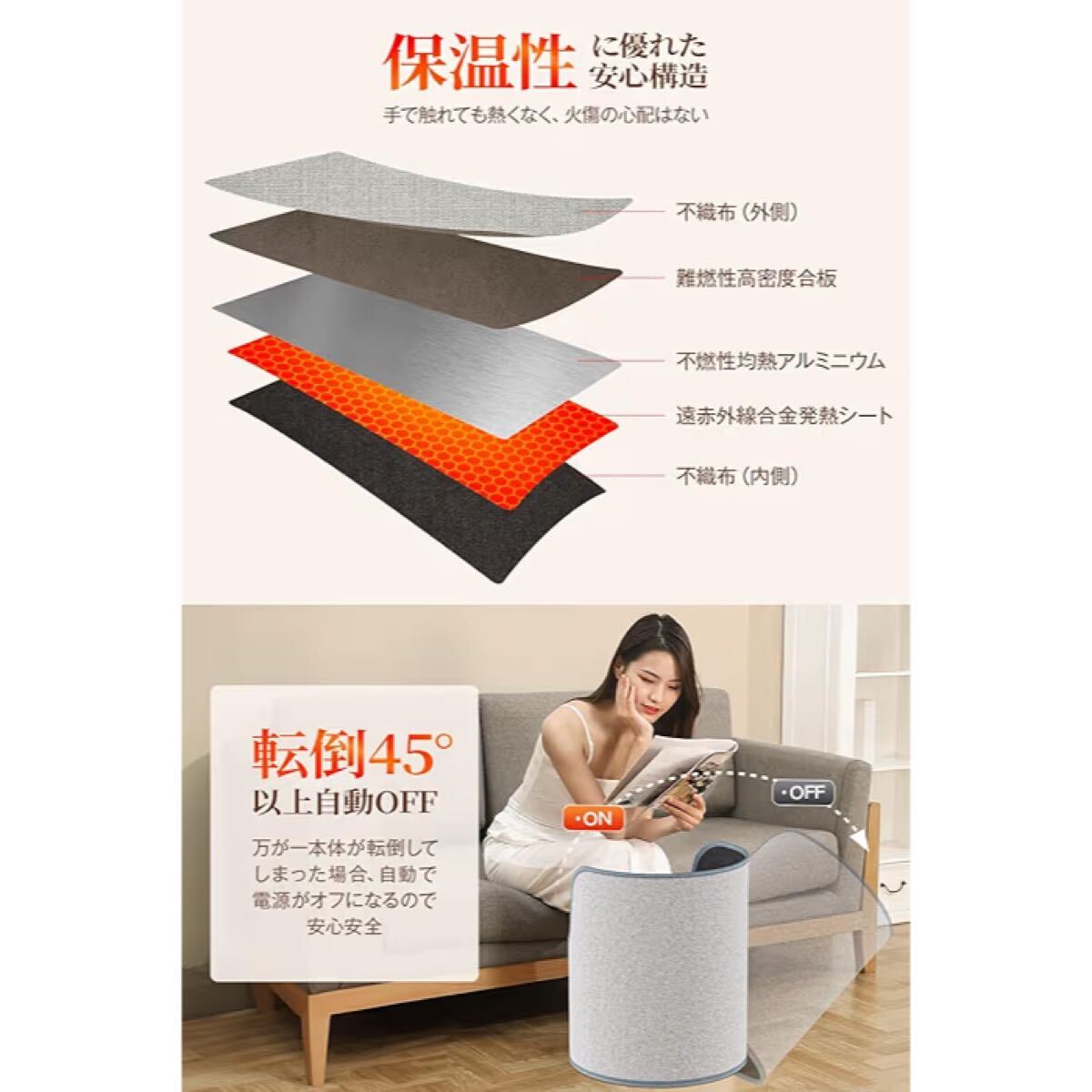 省エネ設計により、1時間あたりの電気代はわずか約4.23円と経済的です。8段階のタイマー設定機能があり、無駄な電気を消費することなく、お好みの時間に自動的に電源がオフに。また、安全性にも優れており、安心して毎日使えるデザインです。エネルギーを賢く使いながら、冬の寒さ対策をしっかりサポートします。