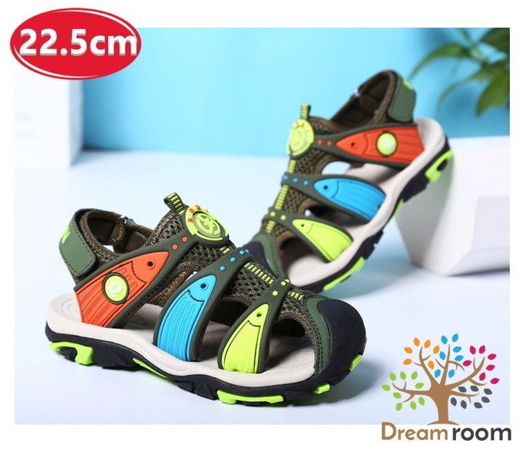 1スタ☆Rainbow クッションサンダル 【グリーンライン 22.5cm】 マリン 海 川 キッズ シューズ ビーチサンダル 子供用 男女