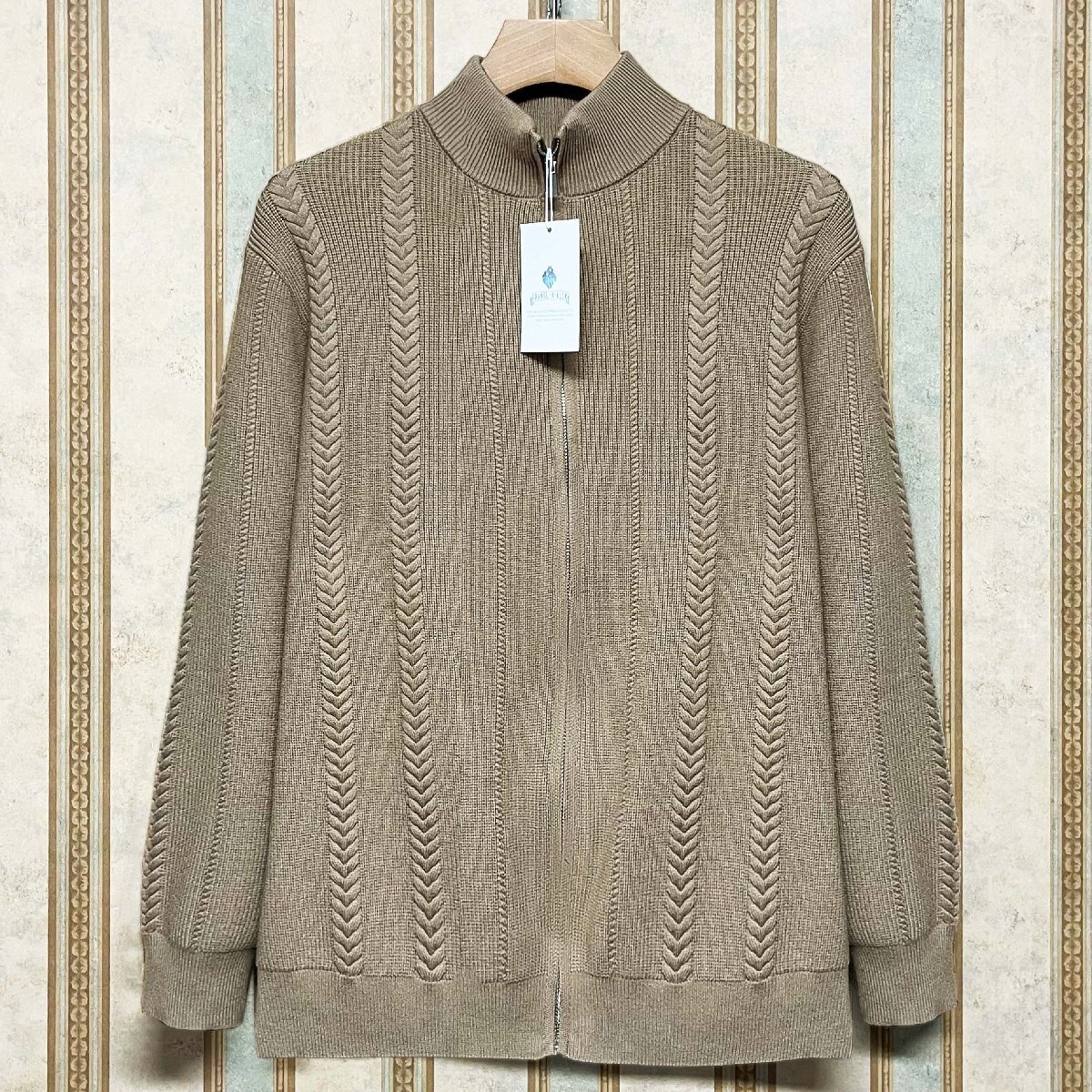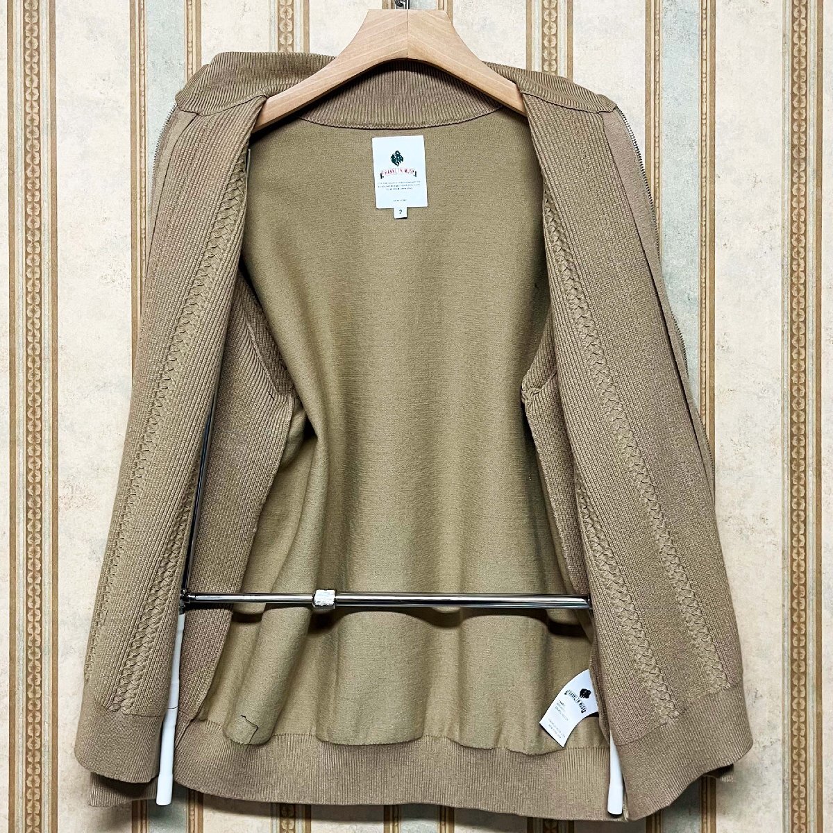 絶賛 定価5万 FRANKLIN MUSK・アメリカ・ニューヨーク発 カーディガン ウール混 保温 ソフト 無地 ケーブル柄 ニット セーター カジュアル 日常 サイズ2