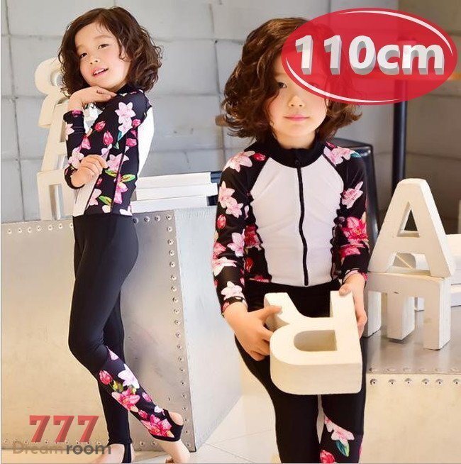 kids 2点セット フラワー 花柄 ホワイト ラッシュガード+海水パンツ セットアップ男女兼用 【110cm】 K-244 スイムウェアー