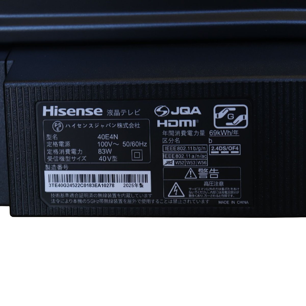 | 商品名 | 12057-O-180-S Hisense ハイセンス 液晶テレビ 40V型 ネット動画対応 E4Nシリーズ 2025年製 40E4N |