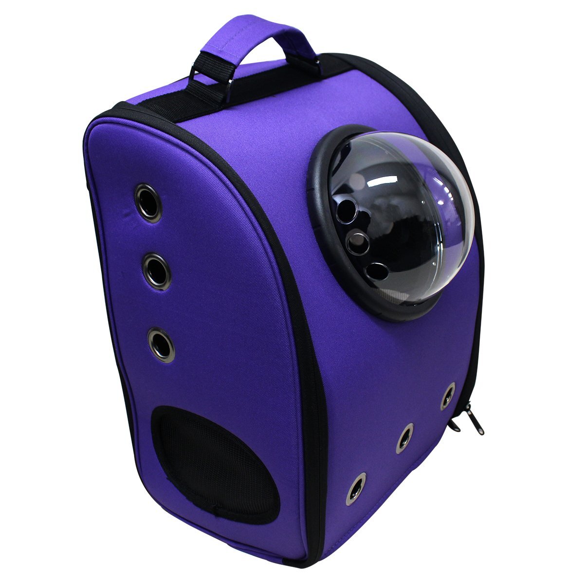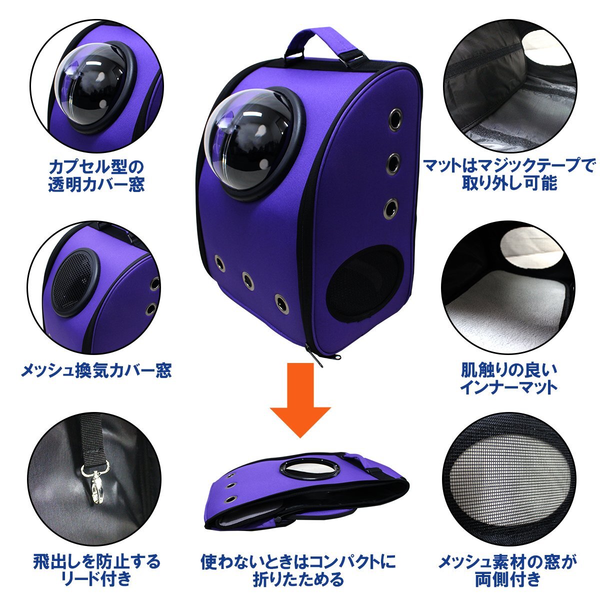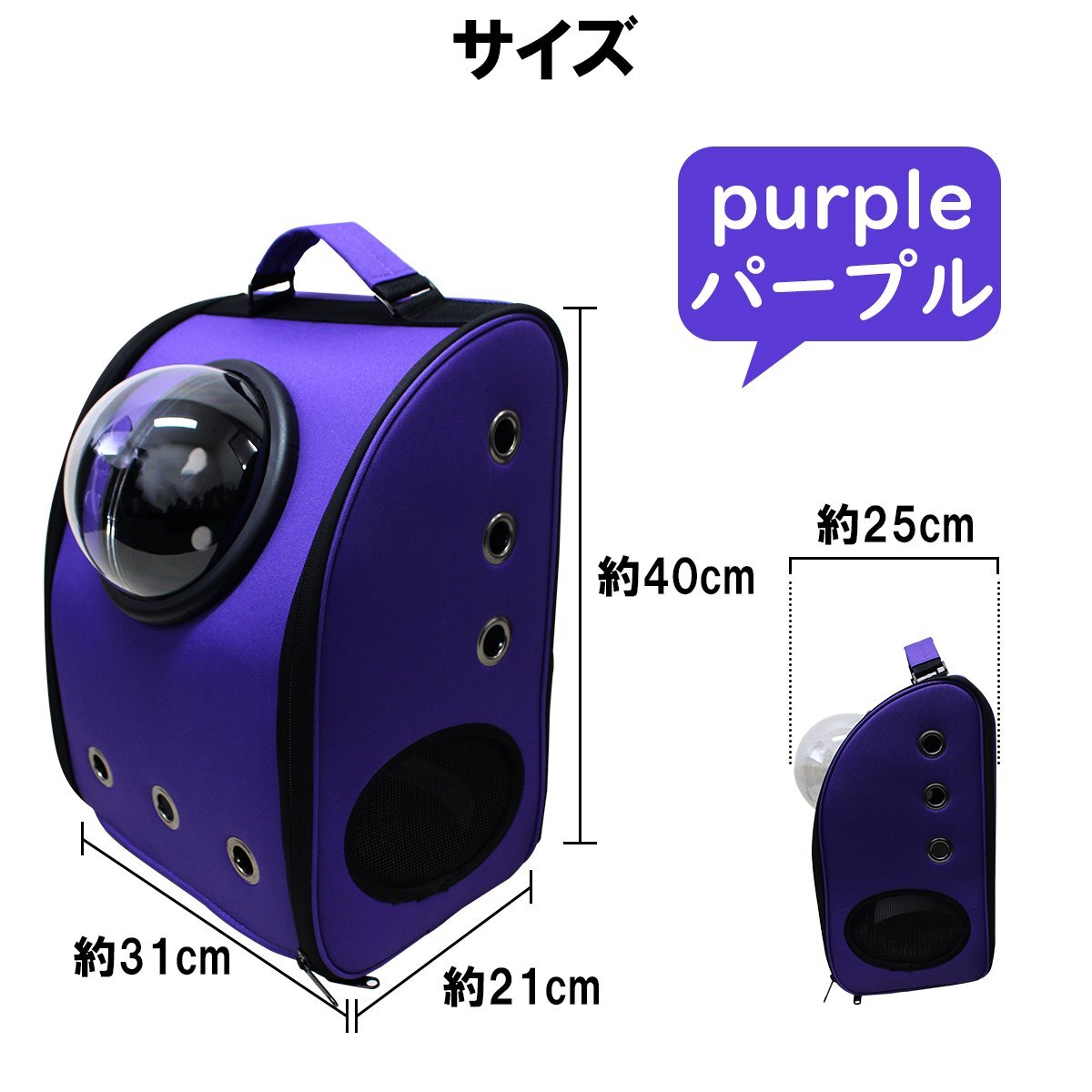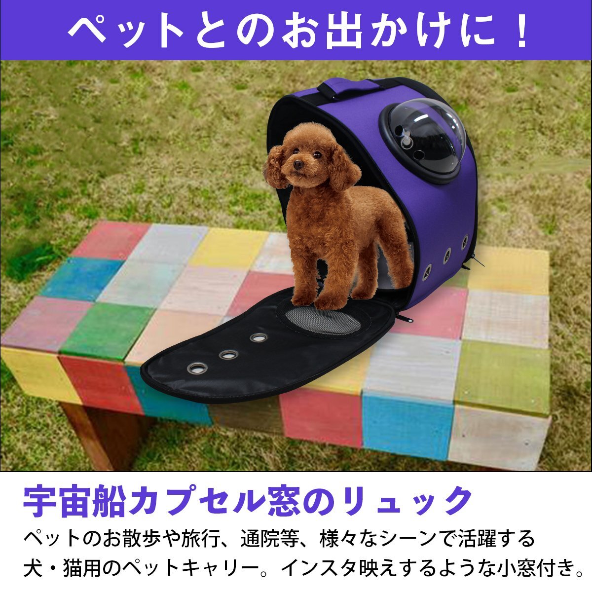 キャリーバッグ 宇宙船カプセル型 リュックタイプ 犬猫兼用 パープル ペットキャリー カプセルウィンドウ付 おしゃれ ペットバッグ