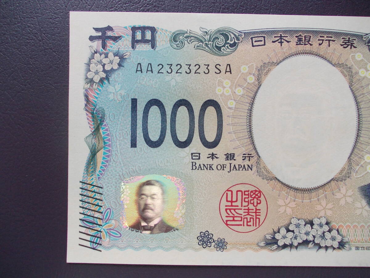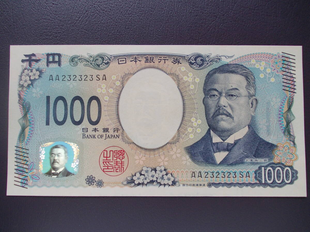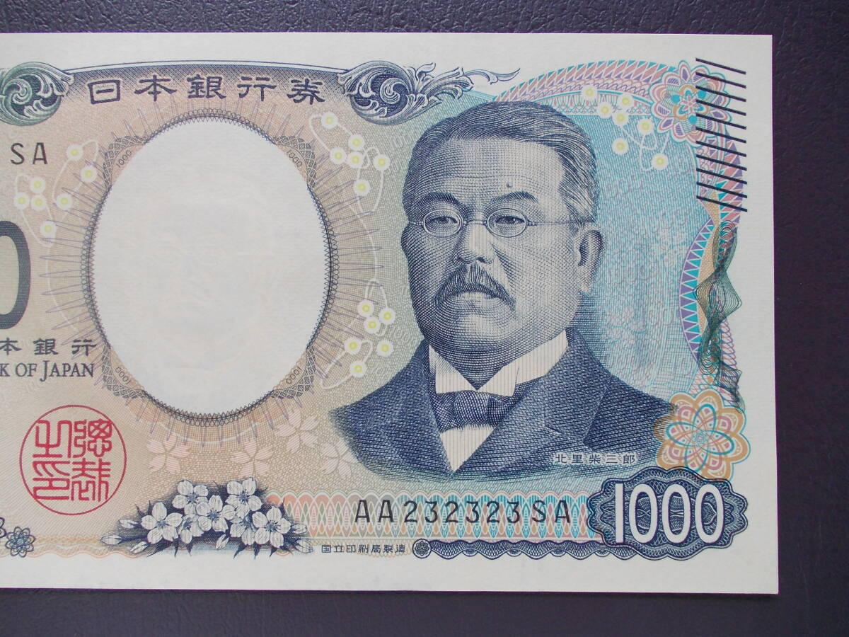 北里柴三郎千円の頭AAの珍番、AA323232SAです。