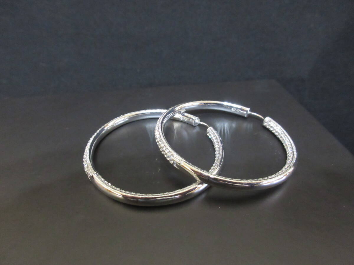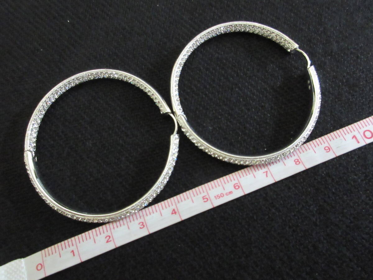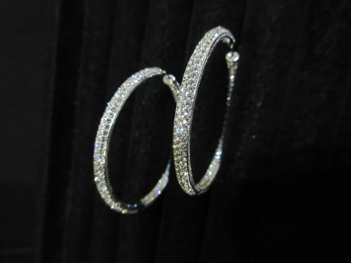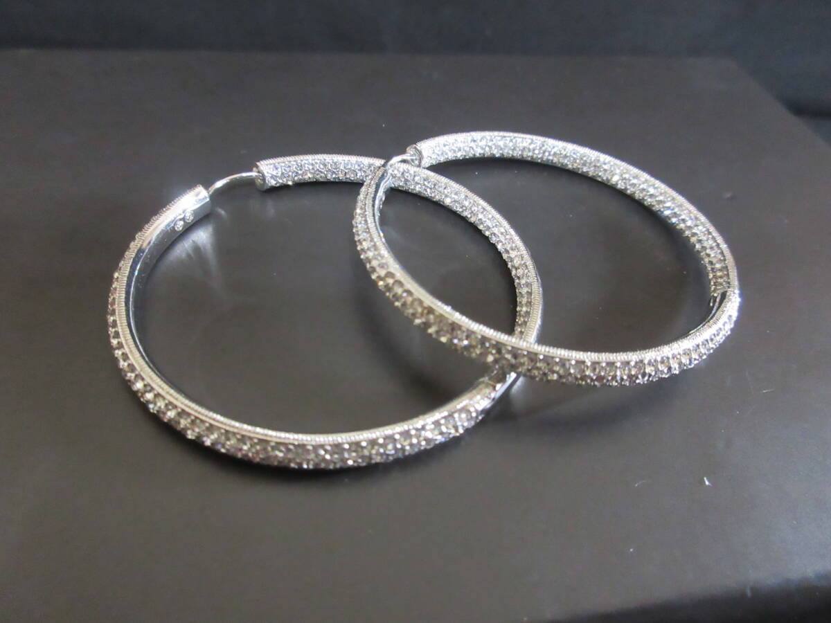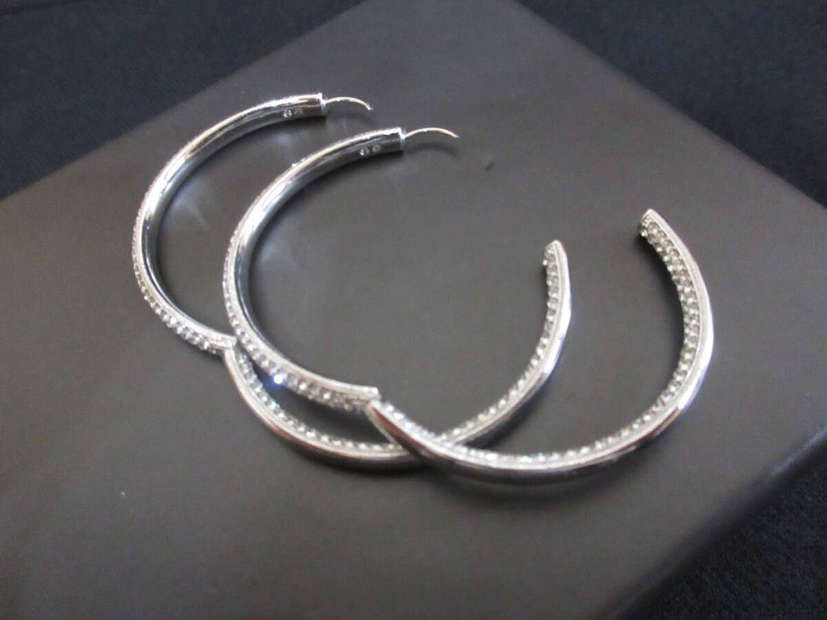 *100円~【美品】N 刻印 スワロフスキー クリスタル ガラスストーン シルバーカラー リングタイプ フープピアス*T-38