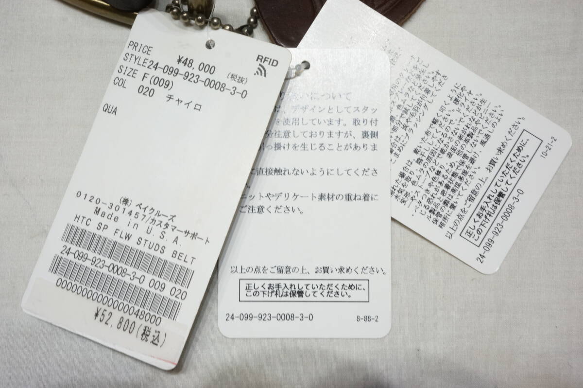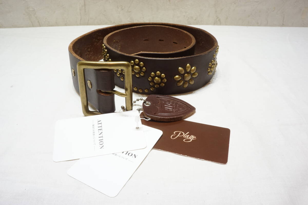 【L10A】タグ付き!Plage プラージュ レディース ベルト 茶色 HTC SP FLW STUDS BELT 約93cm 定価48000円 未使用保管品