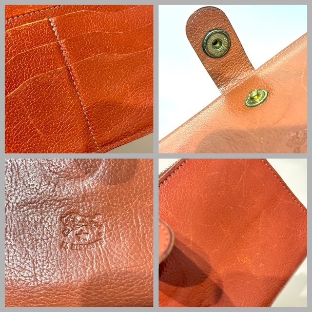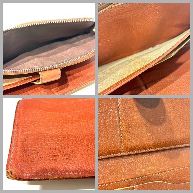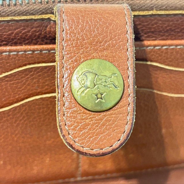 商品説明 良質なナチュラルレザー(牛革)を使用しており、使い込むほどに風合いが増すのが特徴です。 フラップボタンとファスナー式の小銭入れを備えたロングウォレットで、バイソンロゴの真鍮ボタンがついています。 大容量のラウンドジップのコインケース、充実したカードホルダー、お札入れなどが使いやすく配置されており、機能性にも優れています。 詳細 ●サイズ:幅19cm・高さ9.5cm・厚さ2.3cm ●素 材:牛革 ●カラー:キャラメル ●ランク:Dランク ●コンディション:コインケース内部に汚れ、全体的に傷や汚れ、使用感があります。 |