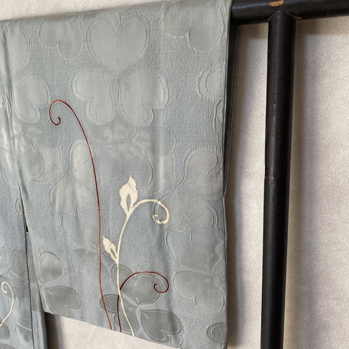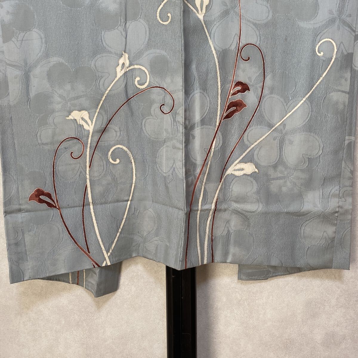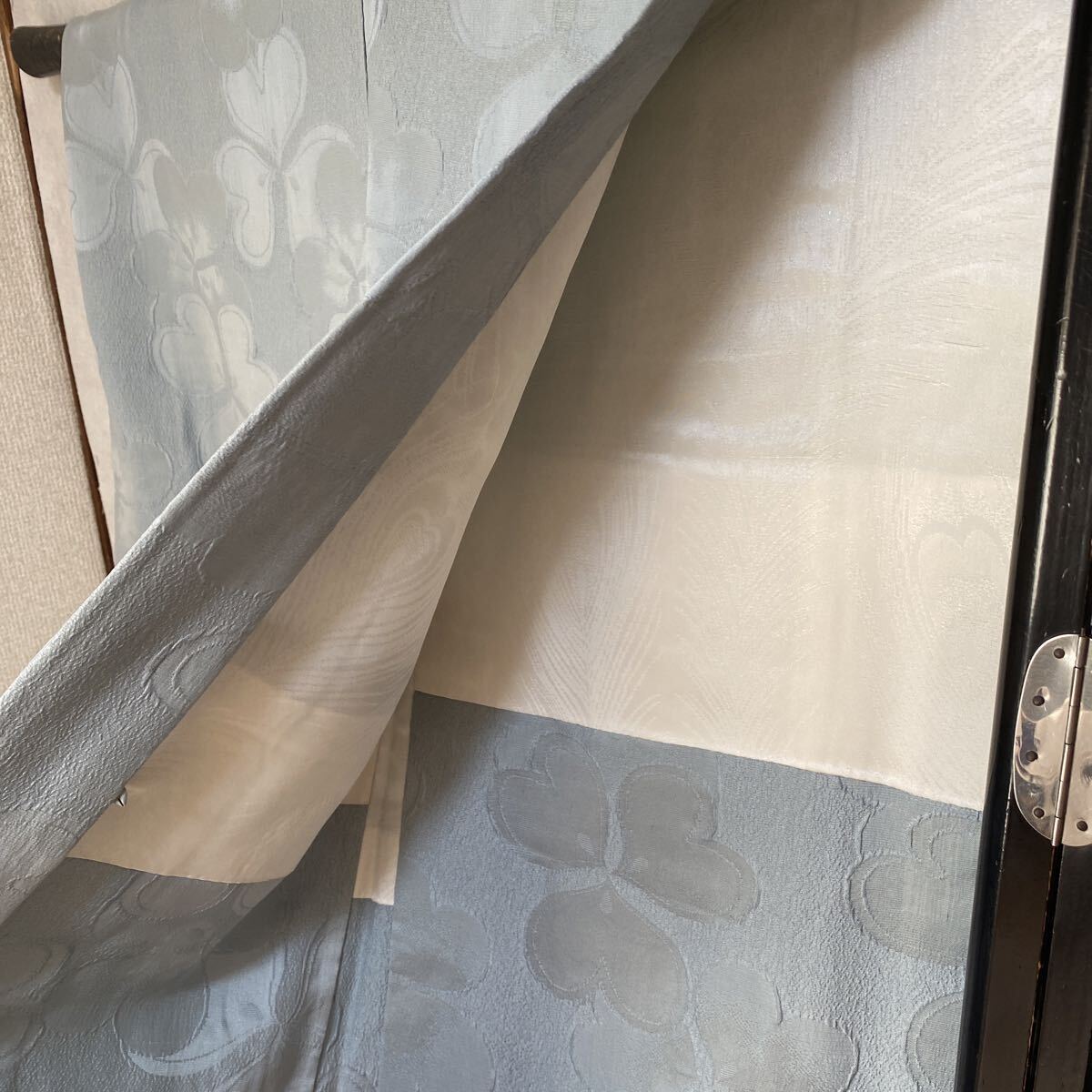 羽織 アンティーク 長羽織 道中着 道行 水色 クローバー 葉 金彩 着物 昭和レトロ 和洋折衷コーデ リメイク 25さ20-21s