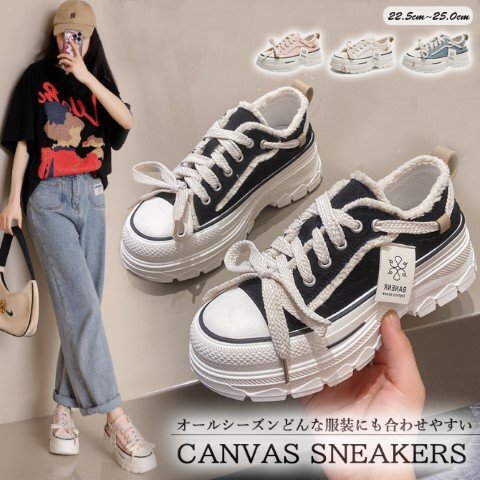 ・オールシーズンどんな服装にも合わせやすいシンプルなキャンバススニーカー。