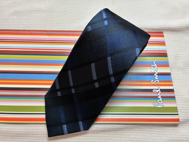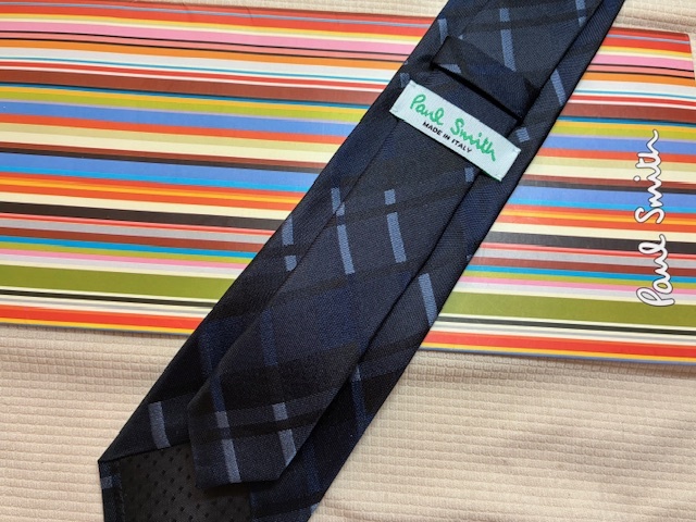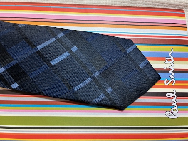 Paul Smith ポールスミスMade in Italy ネクタイ濃紺ブルークロス柄シルク100