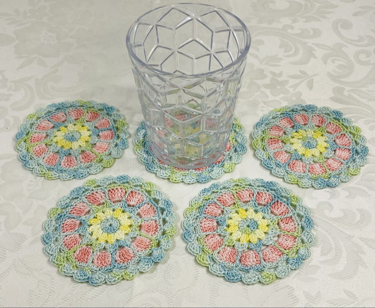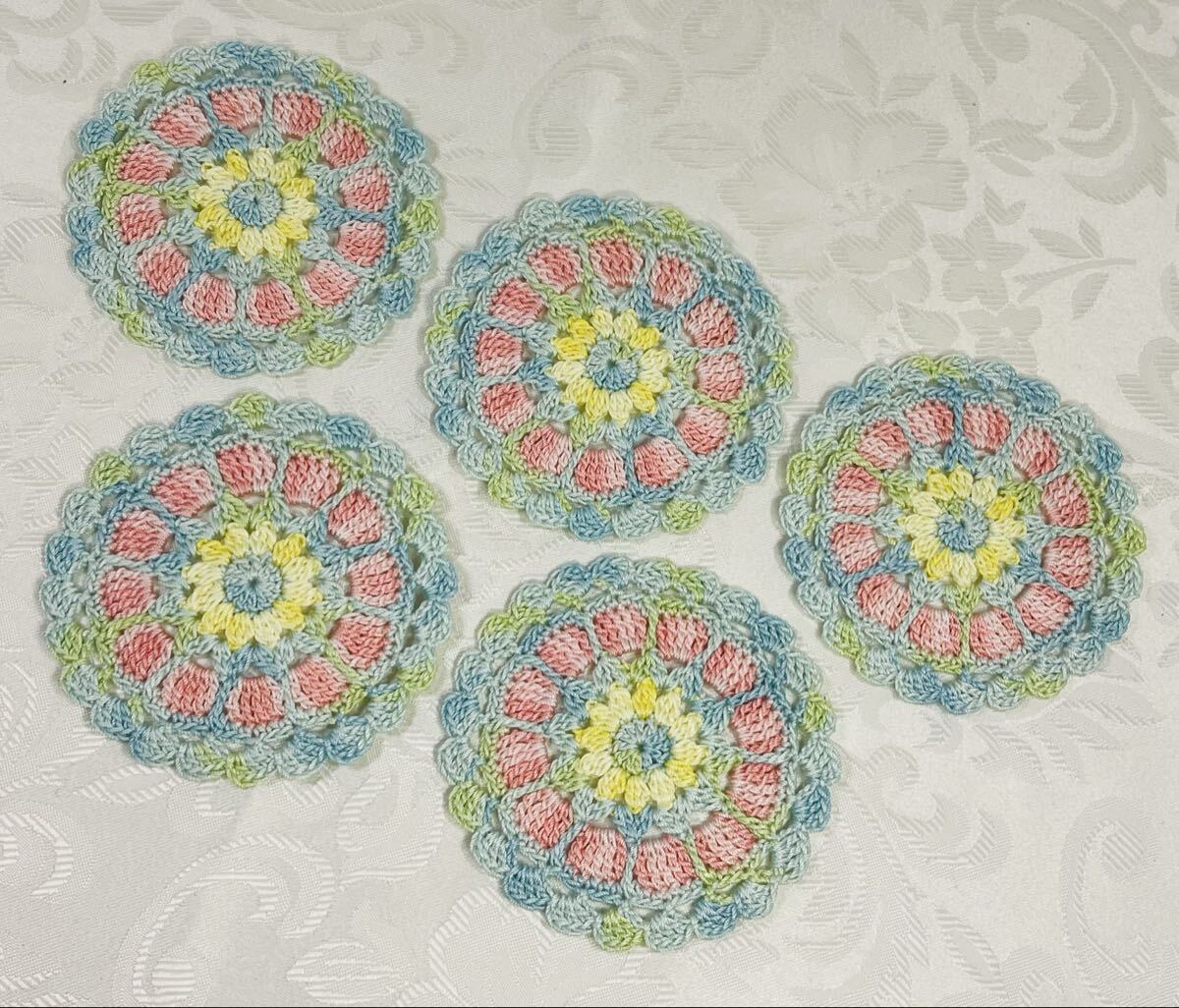 レース編みドイリー37 ハンドメイド コットンクロッシェコースター