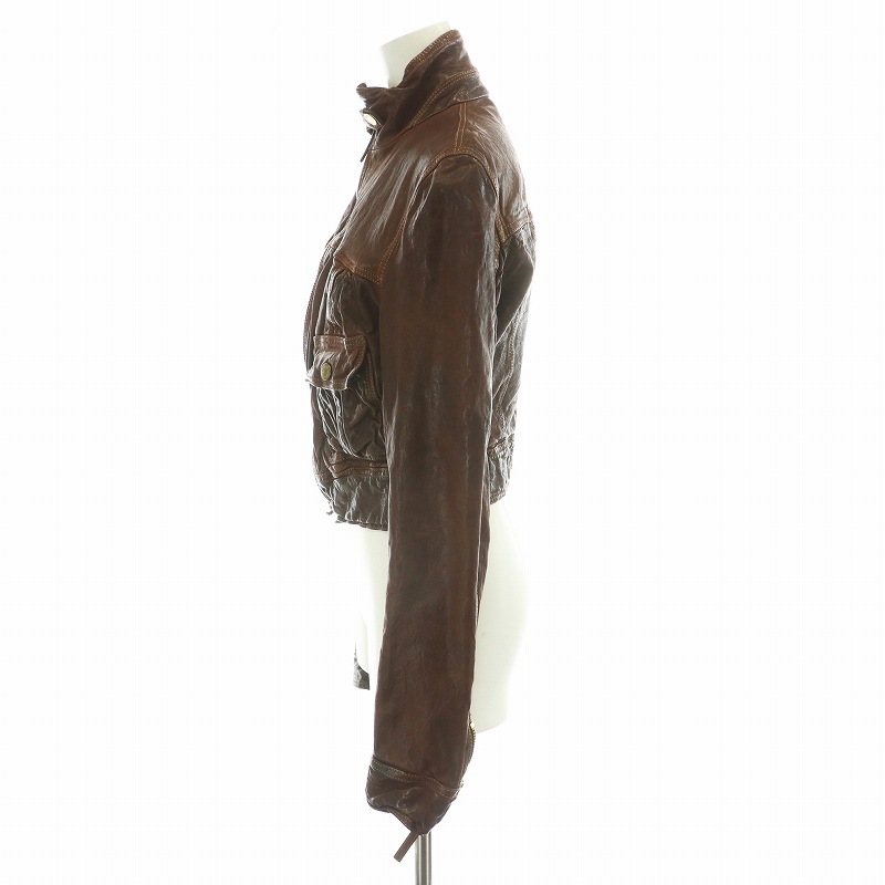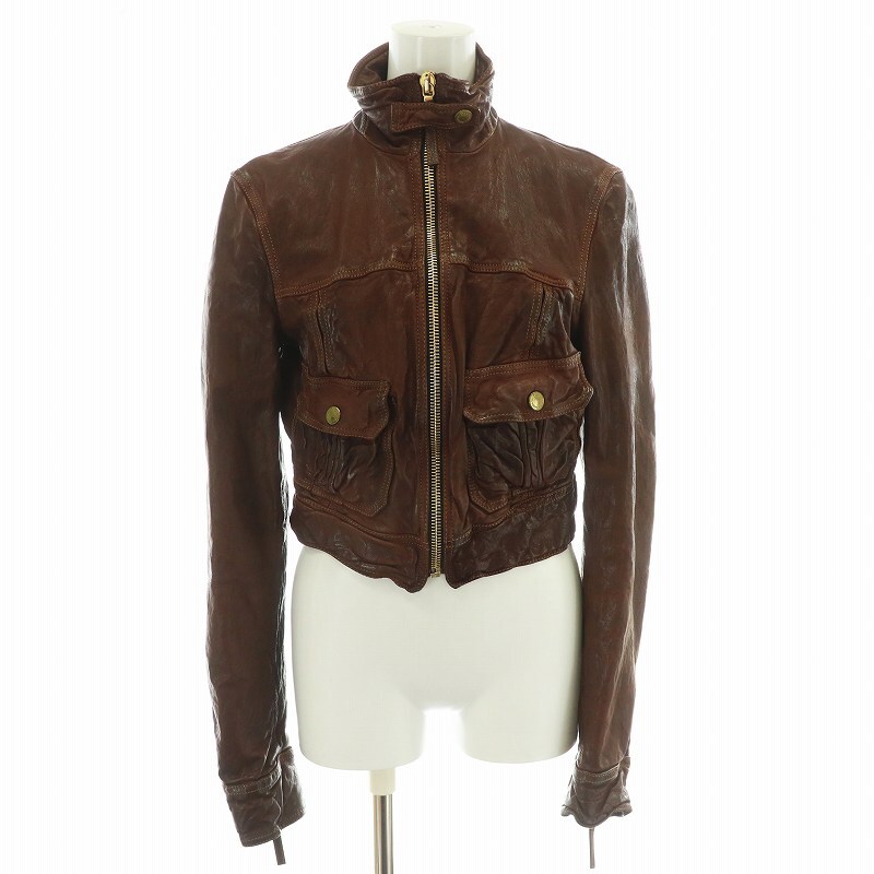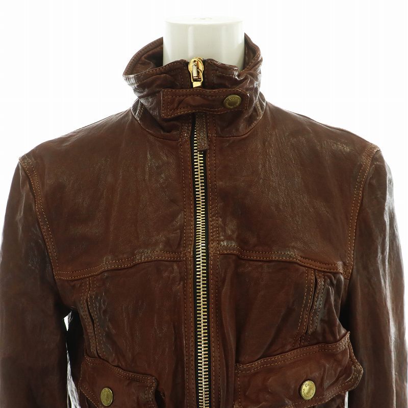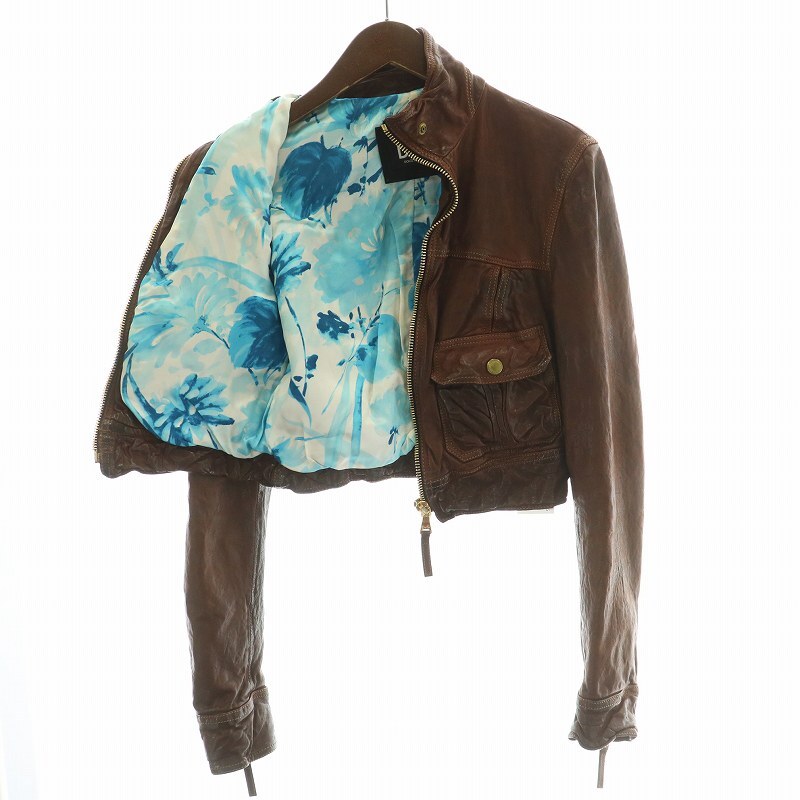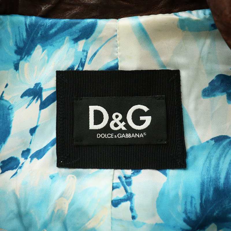 ディー&ジー ドルガバ ドルチェ&ガッバーナ D&G レザージャケット 革ジャン バッファローレザー 裏地 花柄 総柄 40 S 茶 ブラウン /MW ■GY40 レディース
