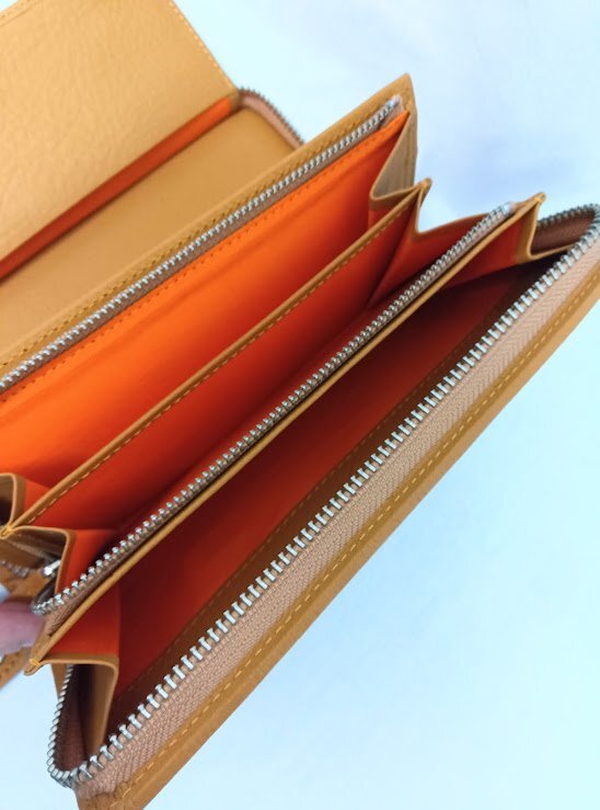 イタリアンレザーでお作りしたラウンドファスナータイプの長財布。美しい発色と独特の風合いが魅力です。