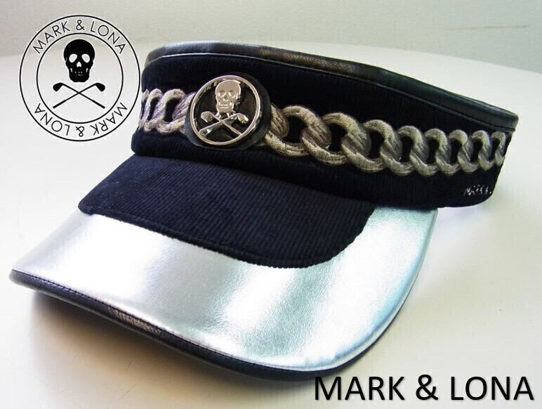商品説明:コーデュロイ素材に、チェーン立体刺繍を大胆に施したサンバイザー。フロントにシンセティックレザーの台座が付いたカシメ式のサークルスカル金属バッジを装着し、重厚感のあるイメージに仕上げています。ひさしの先にメタリックな切り替えを入れ、華やかな印象もプラス。サイドとアジャスターにMARK&LONAのロゴをメタリック刺繍で表現しています。