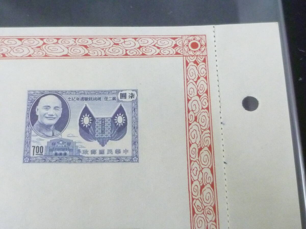 25L S №2 台湾切手 1955年 SC#1114a 再任総統就職周紀念 小型シート 耳紙付 未使用NH・VF