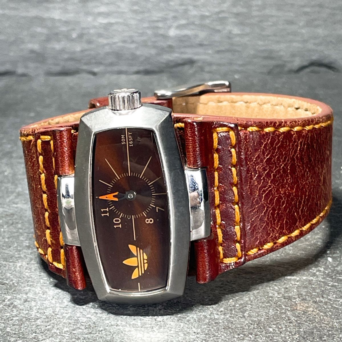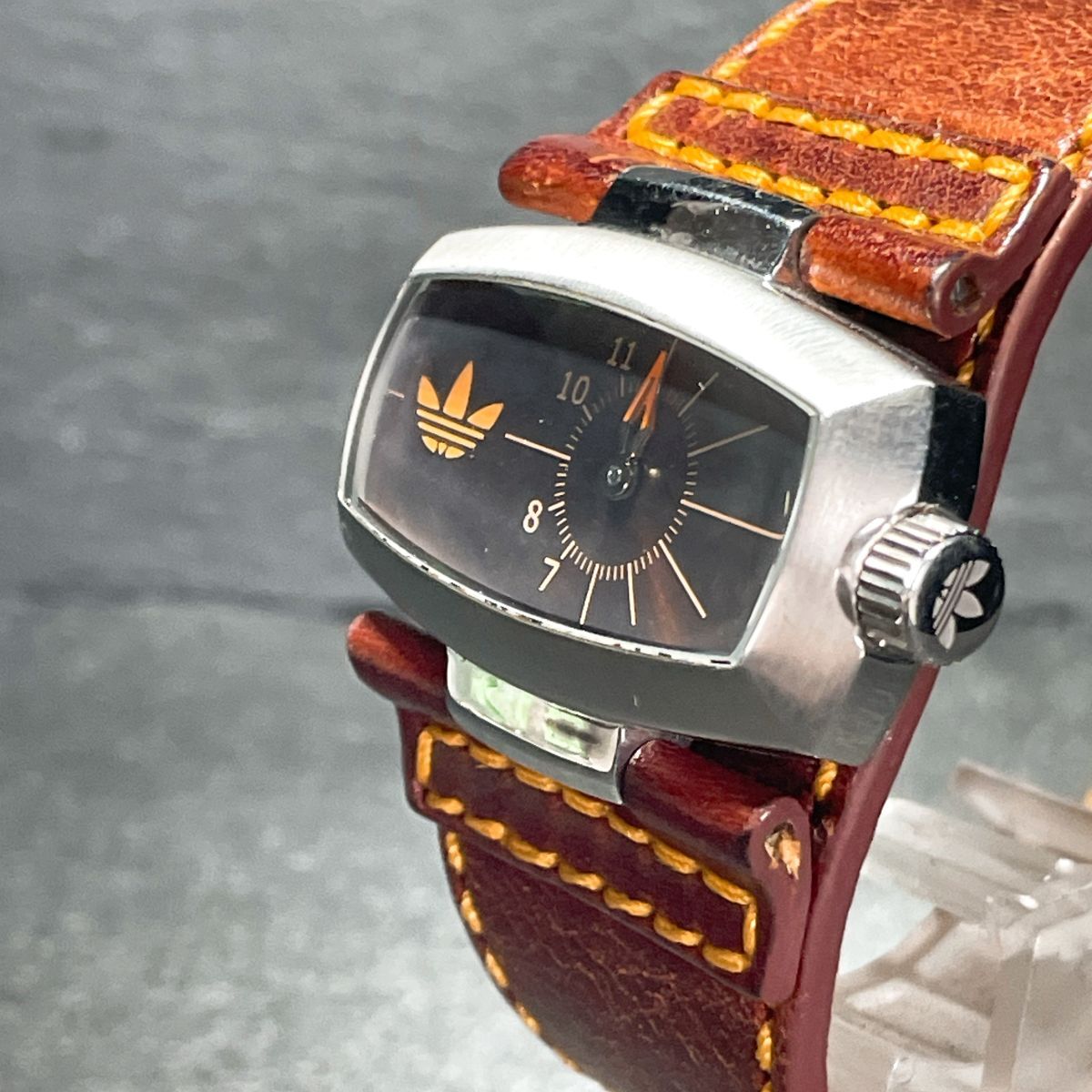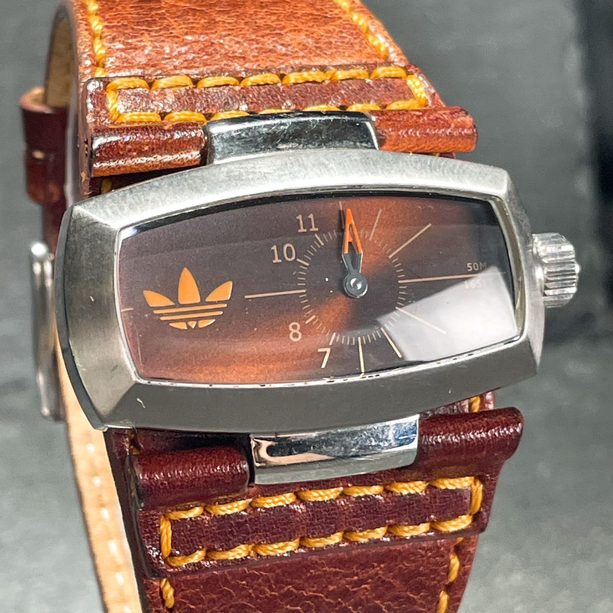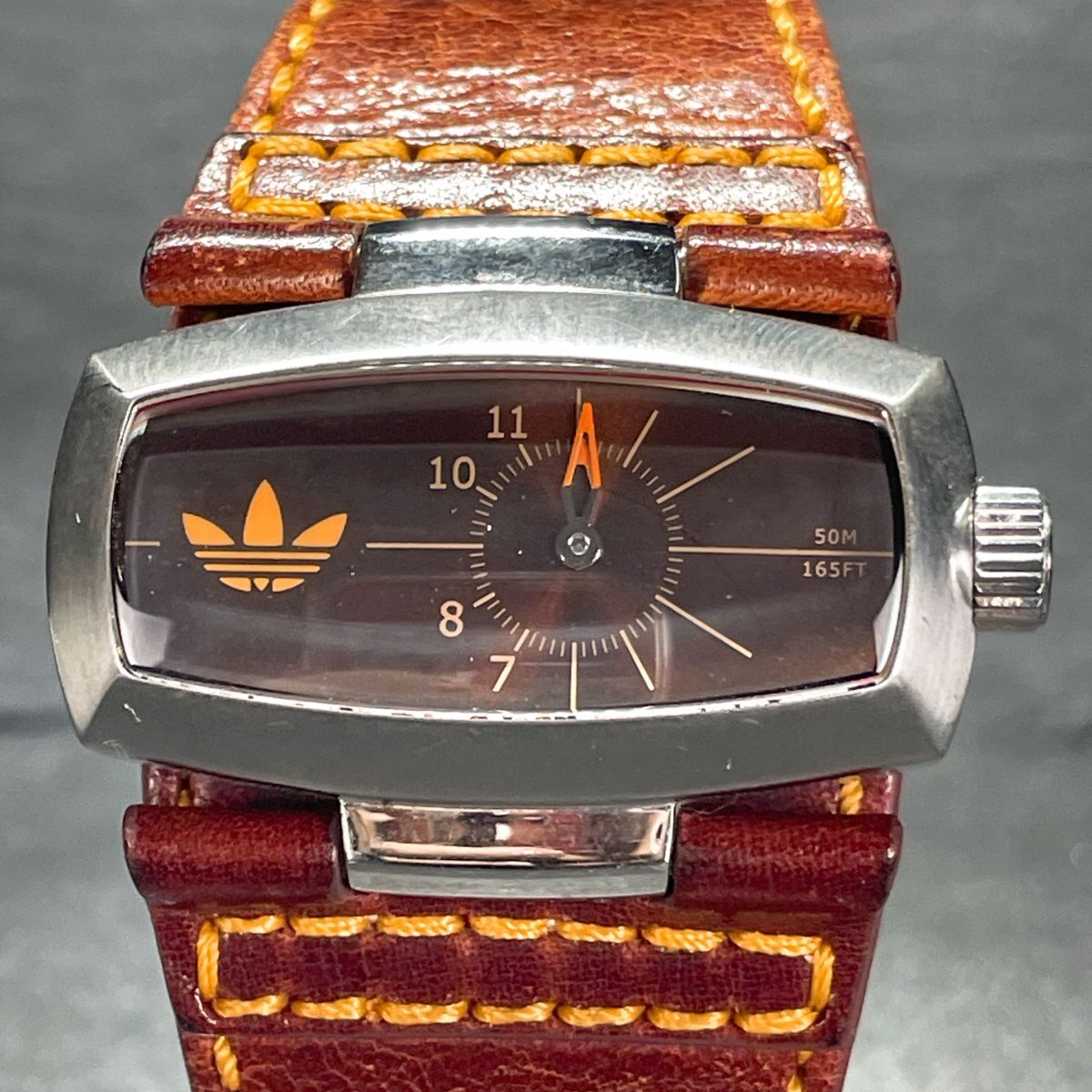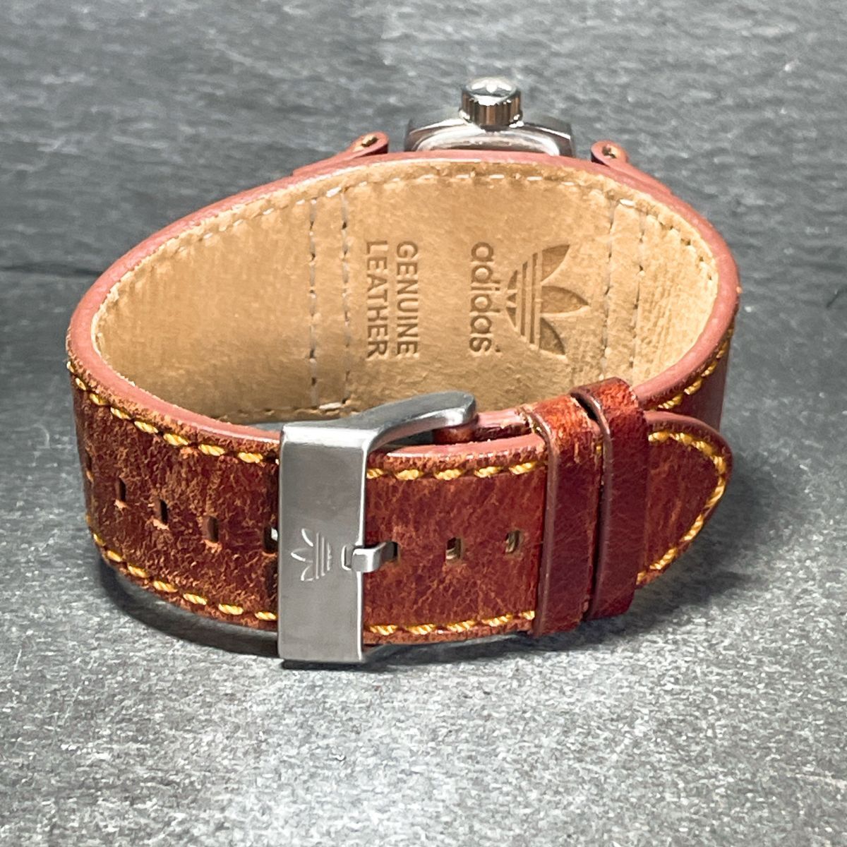 美品 adidas アディダス 腕時計 アナログ クオーツ ブラウン文字盤 レザーバンド ユニセックス 男女兼用 ステンレススチール シルバー