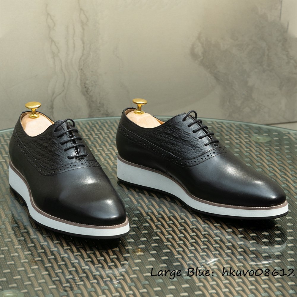 定価11万◆ビジネスシューズ 超希少 本革 メンズシューズ 職人手作り 彫り イタリア レザーシューズ 高級牛革 革靴 紳士靴 ブラック 27.5cm