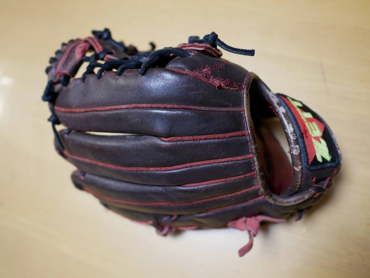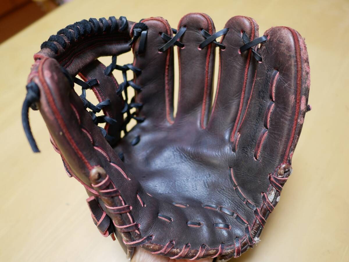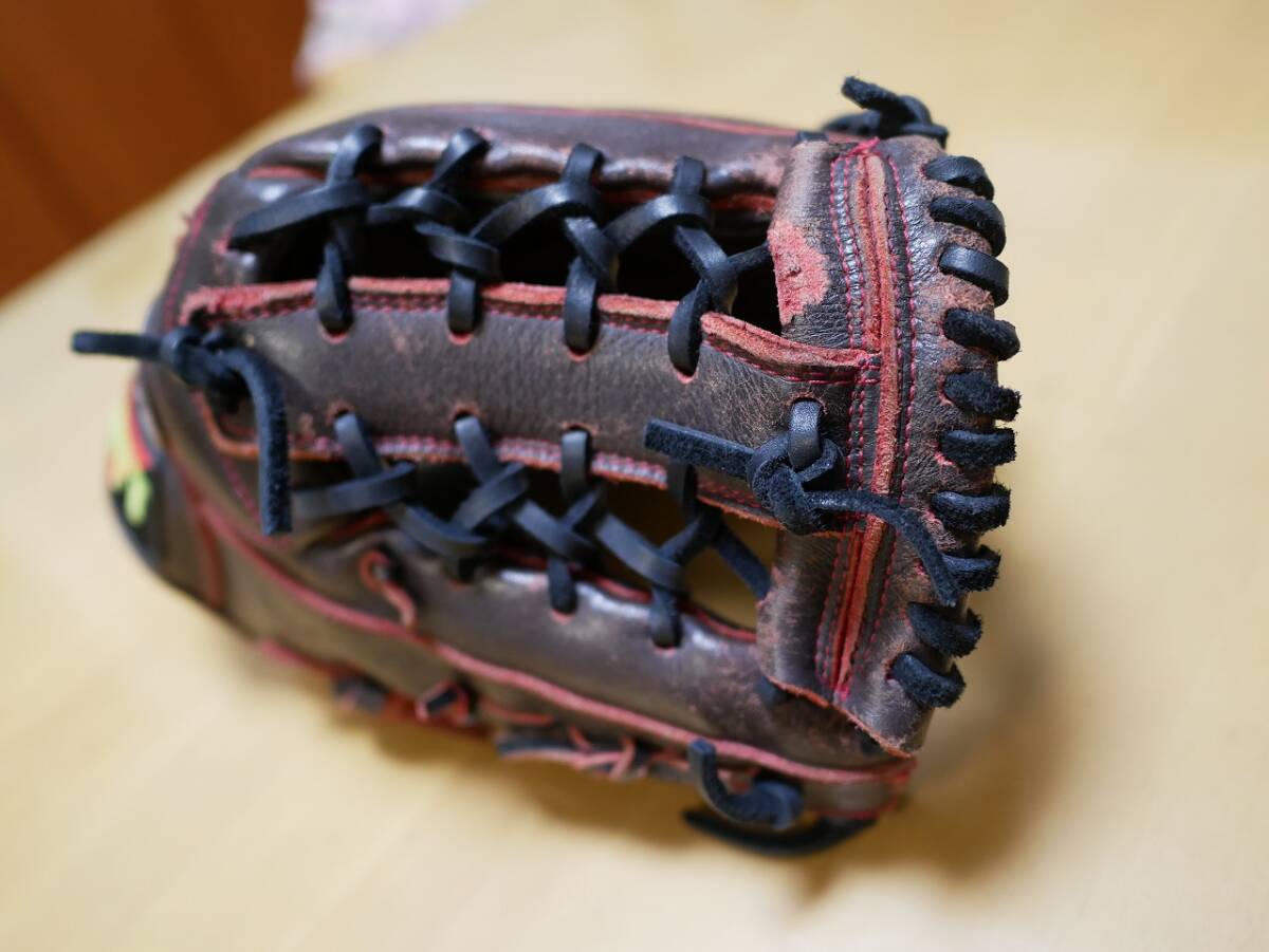 親指と人差し指の間にある捕球する部分のレースは新しいものに交換しました。