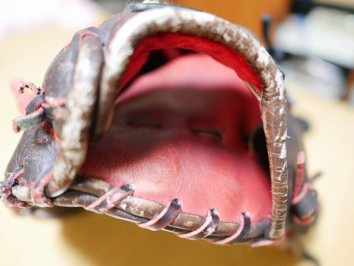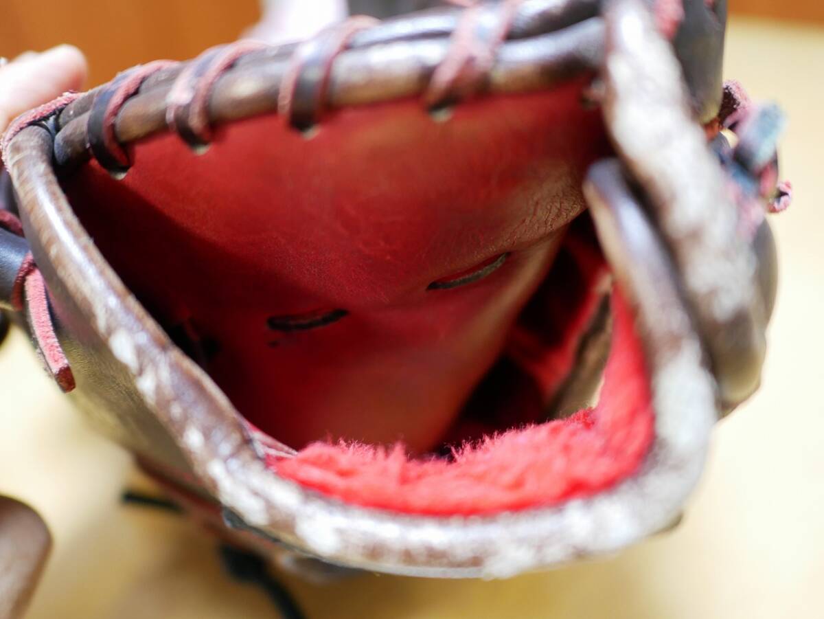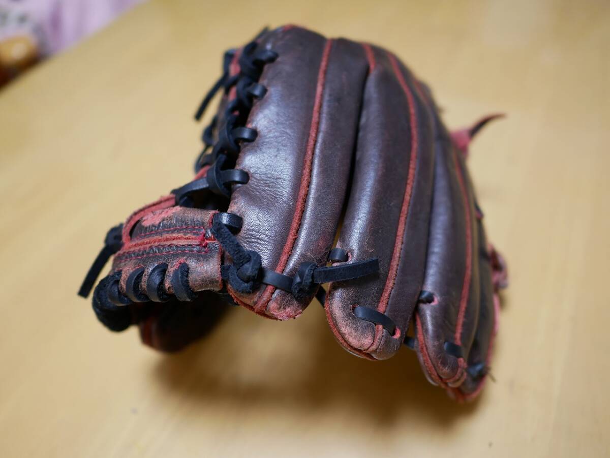 親指と人差し指の間にある捕球する部分のレースは新しいものに交換しました。