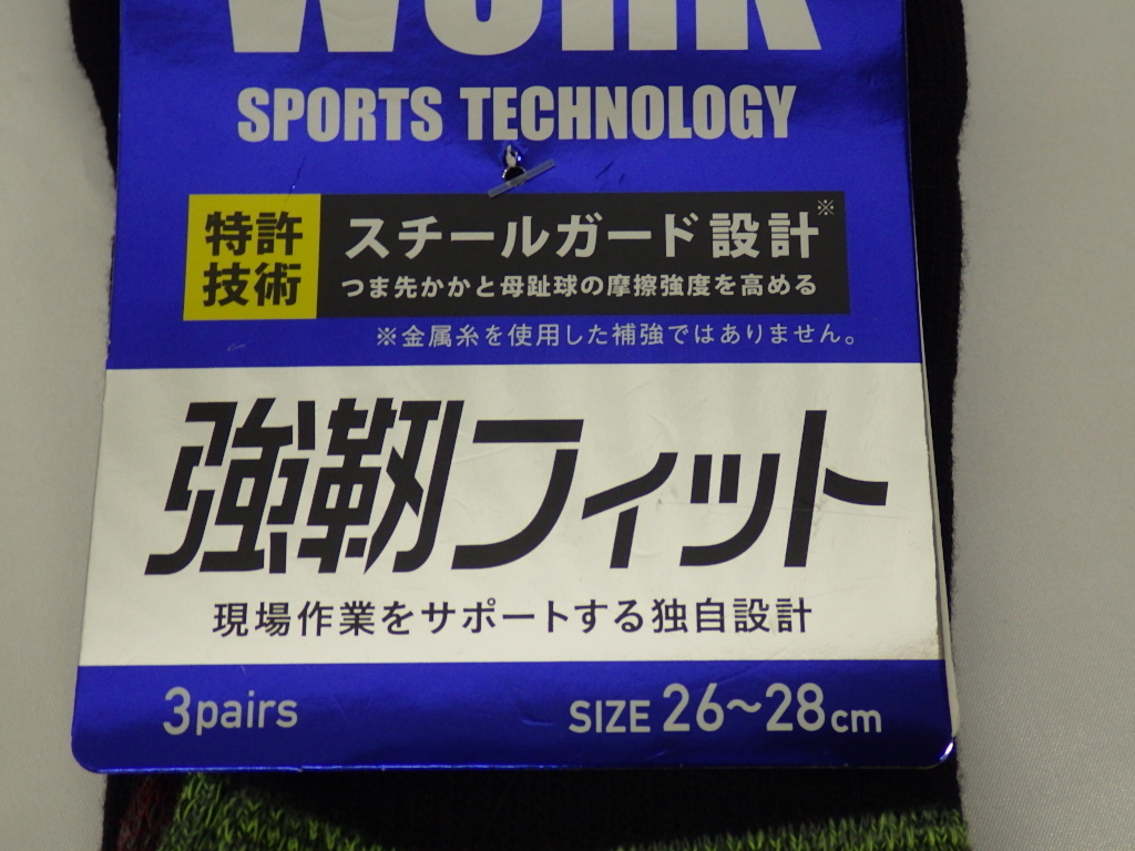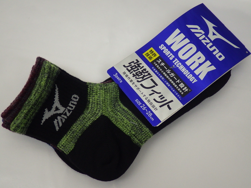 未使用 mizuno ミズノ WORK ソックス 靴下3足組み 強靭フィット スチールガード設計 26cm~28cm