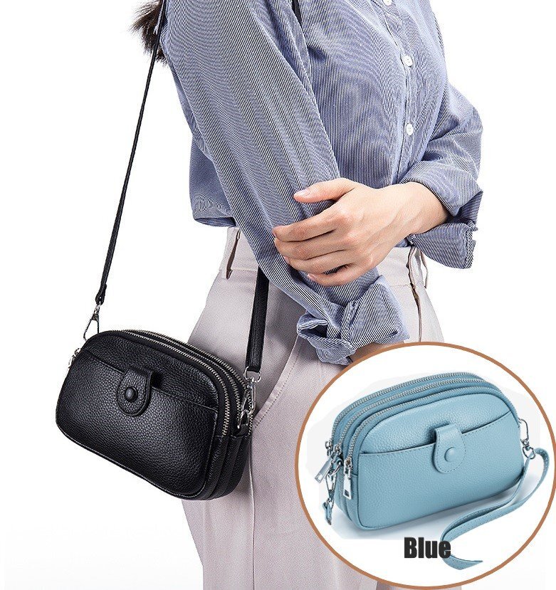 ショルダーバッグ 牛皮 ブルー レザー シンプル 小物 スマホ カード 鍵 たばこ など n529