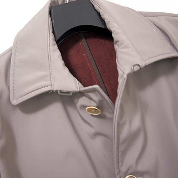 スマートに着回せる【撥水・防風・保温・ストレッチ】の高機能3レイヤーボンディングステンカラーコートです。 表地には肉厚感のある3層ボンディング構造のテクニカルファブリックを使用しており、生地の間に防風フィルムやフリースをボンディングしているので、軽量で柔らかく、スッキリとした見た目なのに高い保温効果があります。 暖かいのに着膨れせずにスマートに着回せるのが魅力で、柔らかくソフトな生地感で嵩張らず、スーツの上にも余裕で着用でき、秋先から冬~春までオンオフ兼用で活躍してくれます。 袖裏は滑りの良い裏地を使用しているので、袖通しの良さも心配ありません。 【デザイン】 ・身頃と背裏はフリース仕様 ・袖は裏地付き ・フロントは5つボタン ・センターベント ・袖先は4つボタン |