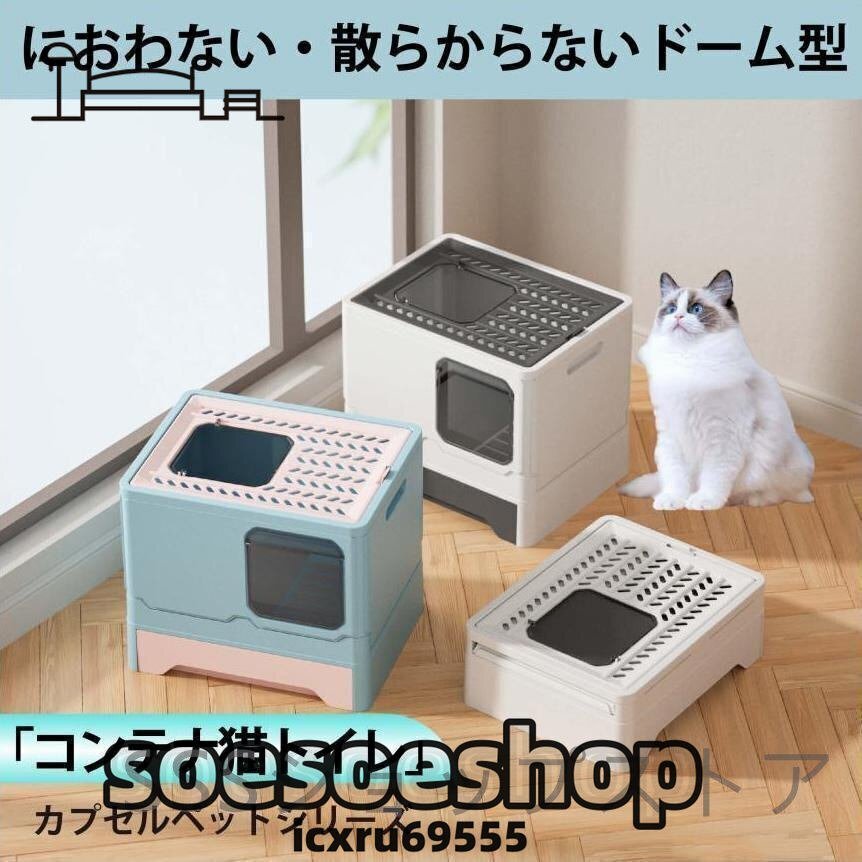 たくさんの展出品の中に弊店の製品をご覧頂き、ありがとうございます。【商品詳細】臭わない!散らからないドーム型「コンテナ猫トイレ」●特長【ニオイ対策】 出入口、天井入口はフタ付きでニオイの拡散を抑制します。【猫砂が散らかりにくい】 砂が飛び出しにくいドー