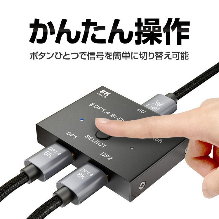 ◆8K対応 DisplayPort切替器 双方向 DPセレクター 1入力2出力/2入力1出力 8K 60Hz 小型 簡単操作 Displayport1.4 DP信号切替器 モニター、プロジェクター等に DPSEC8K2P