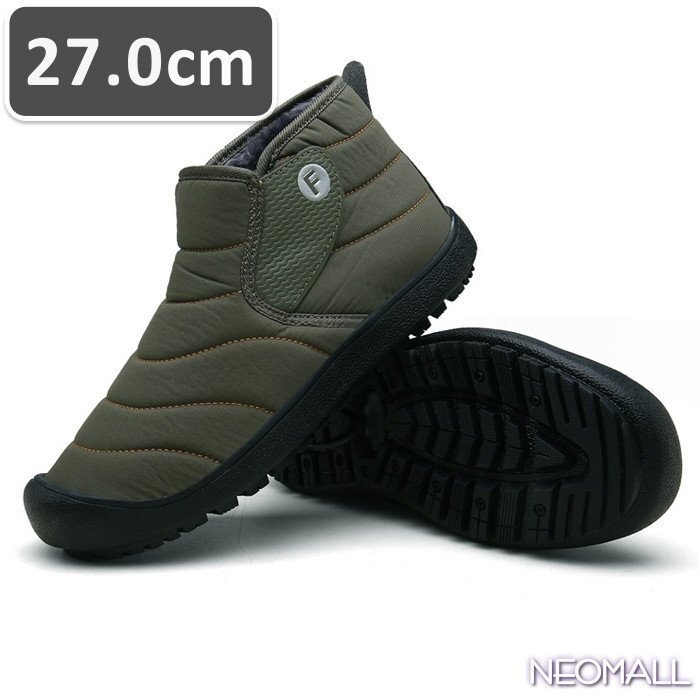 ユニセックス スノーシューズ 【869】 27.0cm オリーブ ムートンブーツ スニーカー ウィンターブーツ 裏起毛 防水 防寒 防滑 冬用靴 綿靴