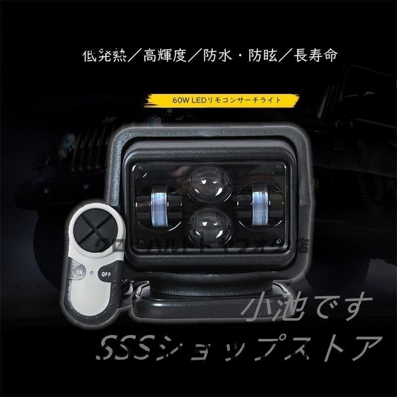 たくさんの展出品の中に弊店の製品をご覧頂き、ありがとうございます。【商品詳細】状態:新品未使用"カラー:ホワイト、ブラック製品名:60W自動車、ヨットLEDリモートサーチライトパワー:60W電圧:12-32V光束:4800LM光の種類:混合光(フラッドライト20W+ スポットラ