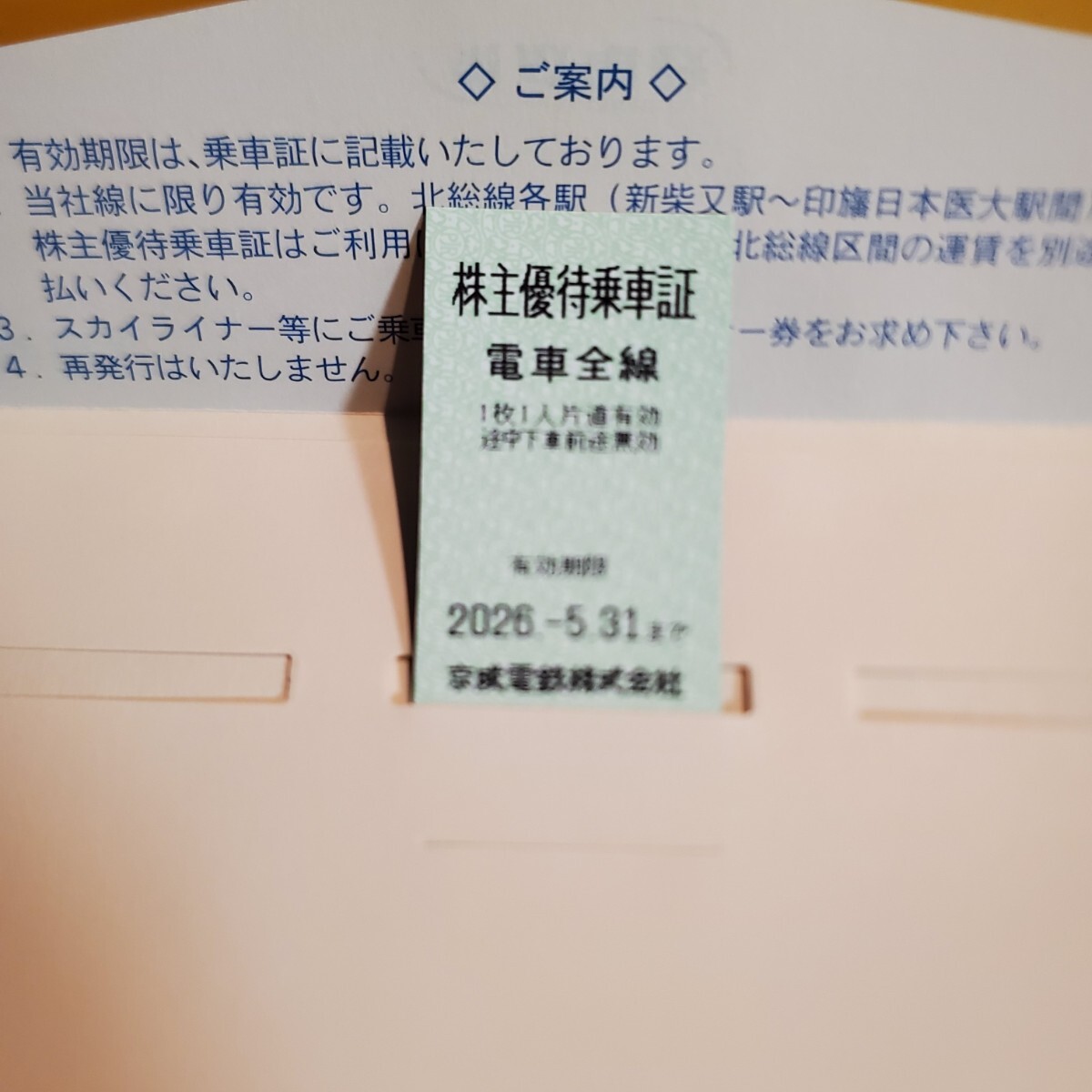 京成電鉄 株主優待乗車証1枚 2026年5月末まで有効