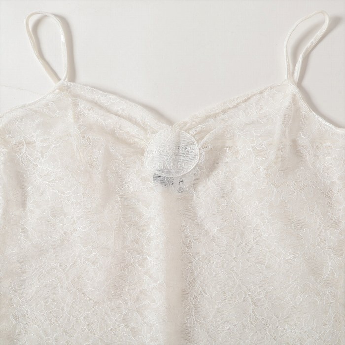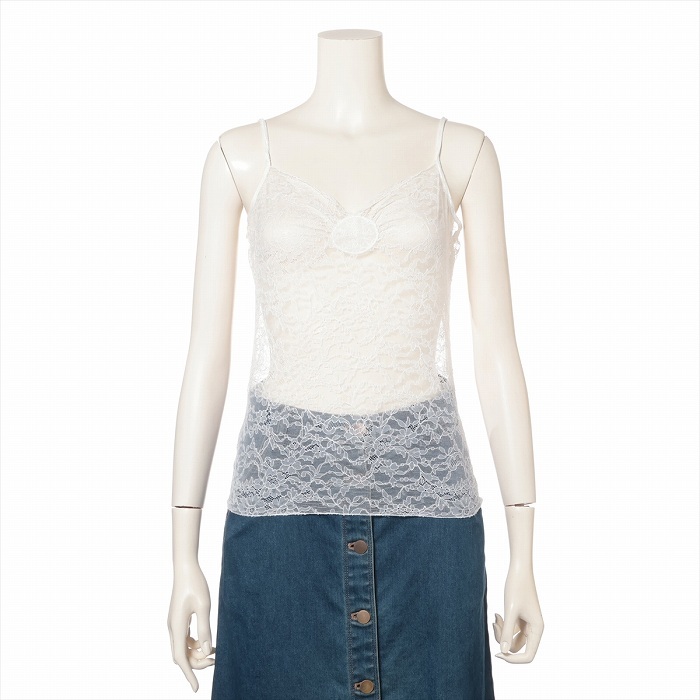 | シャネルのレース素材を使用したキャミソール。 シアーになっていてとても可愛いデザインで胸元のワンポイントの刺繍が目を惹きます。 レイヤリングで浮き出る花柄レースはフェミニンな印象を与え様々な着回しが楽しめるキャミソール、この機会にいかがでしょうか。 |