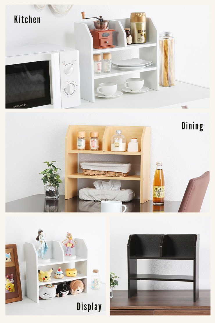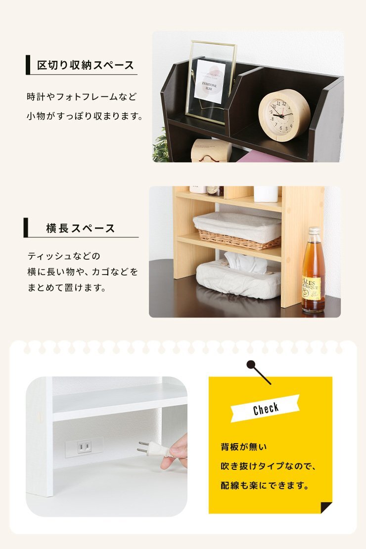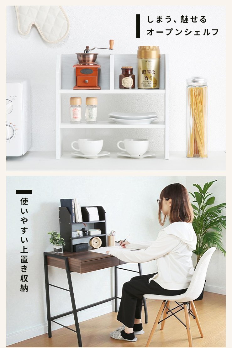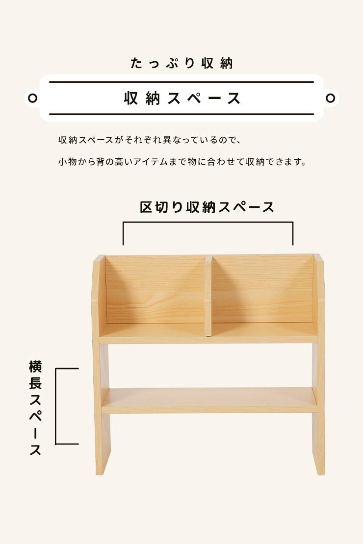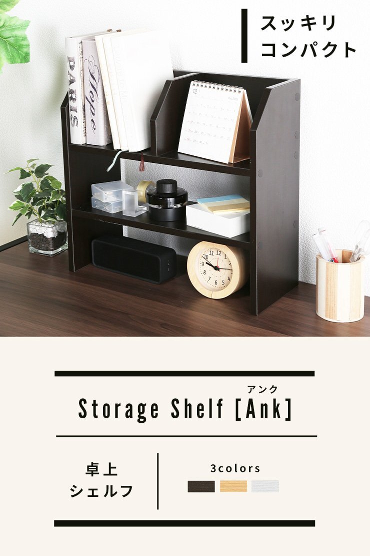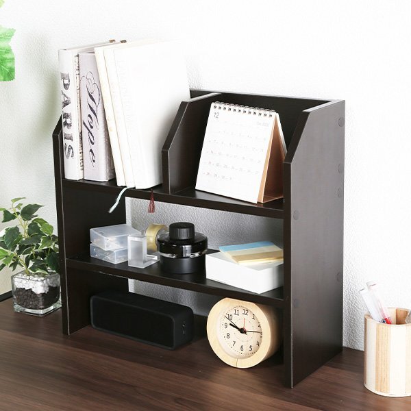オープンラック ストレージシェルフ 幅57cm 卓上ラック 棚上 収納棚 木製 木製ラック 木目 卓上 インテリア コンパクト ブラウン