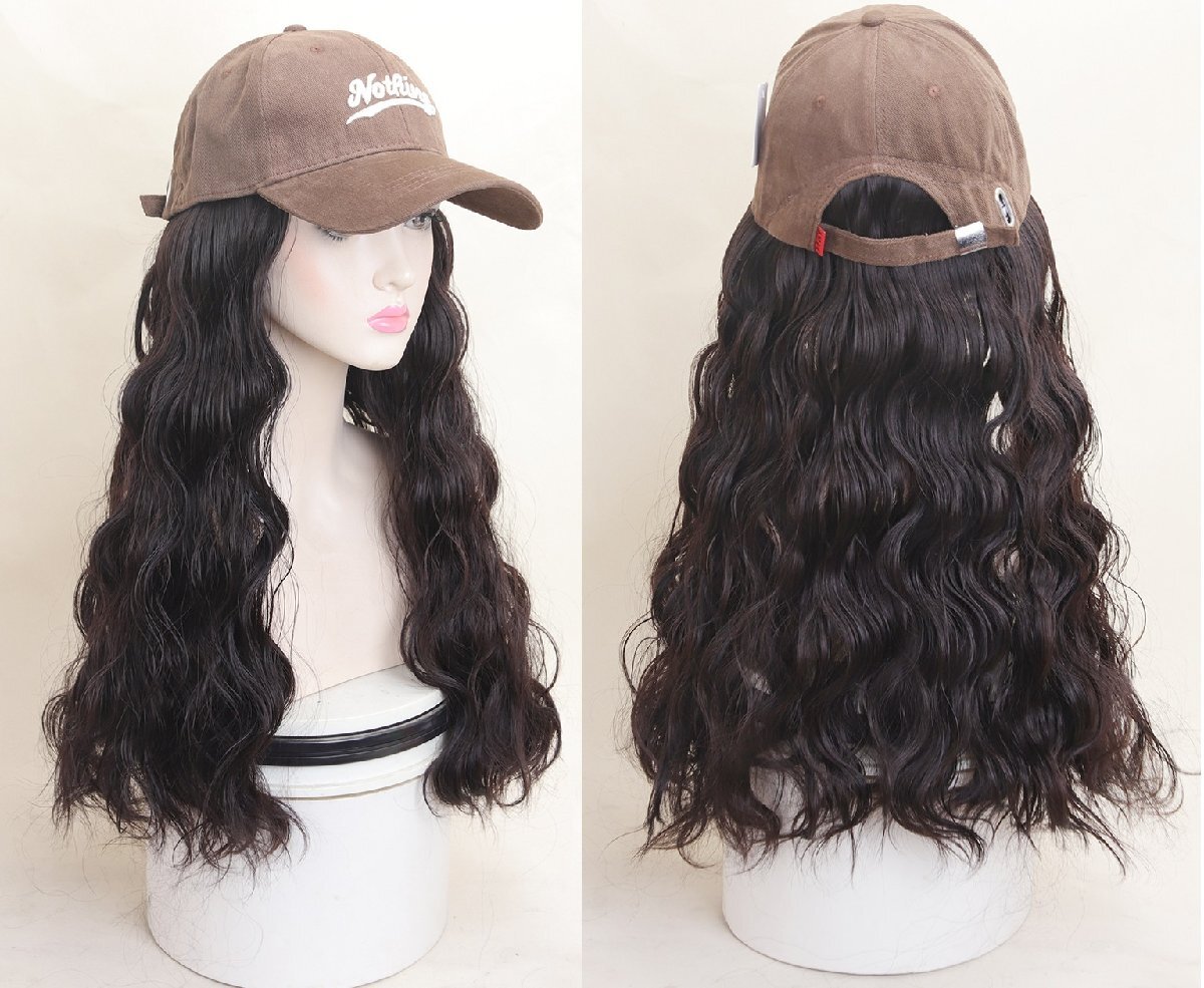 ウィッグ付きキャップ カラーB 髪色チェンジ かぶるだけ キャップ ウェーブ キャップ付きロングウィッグ n463