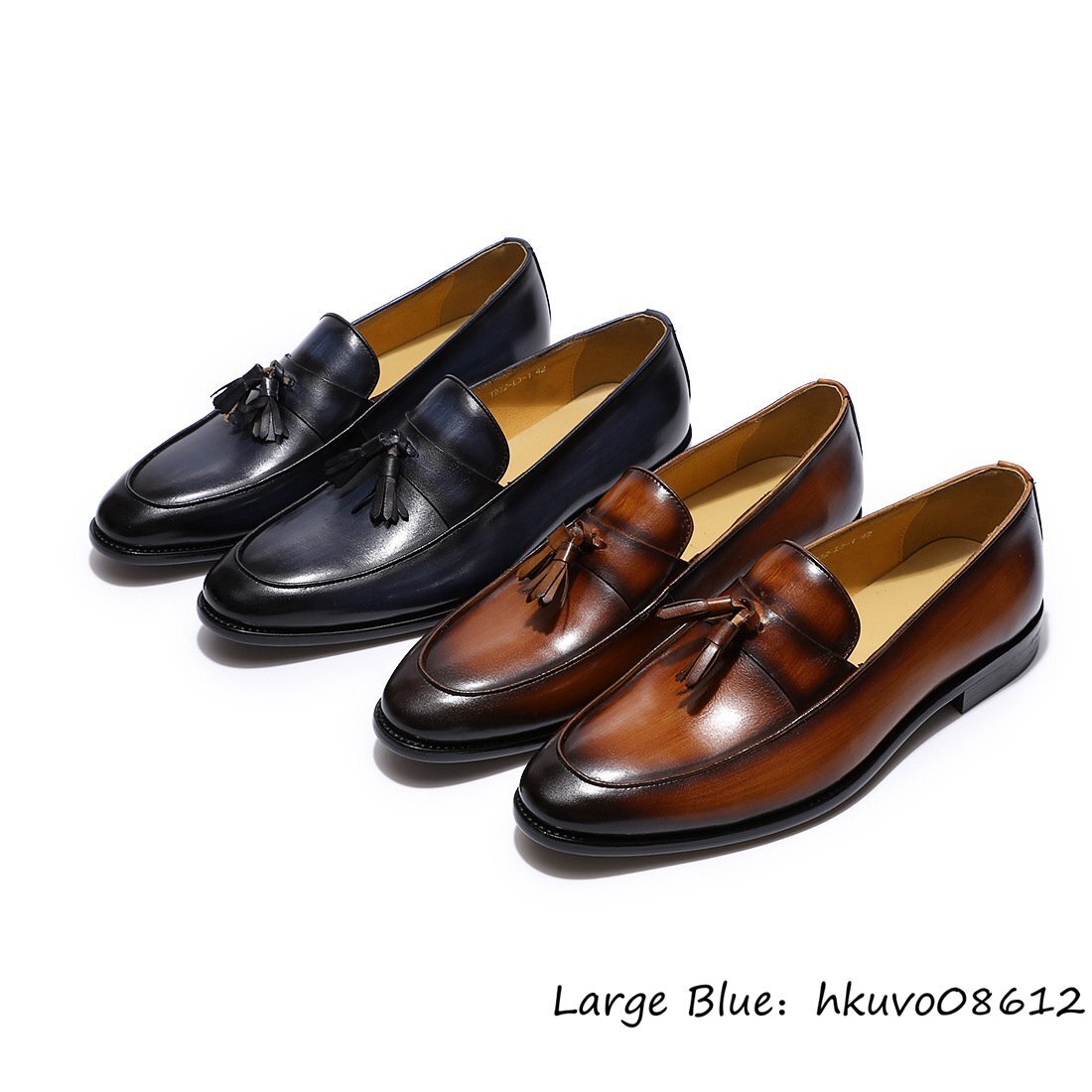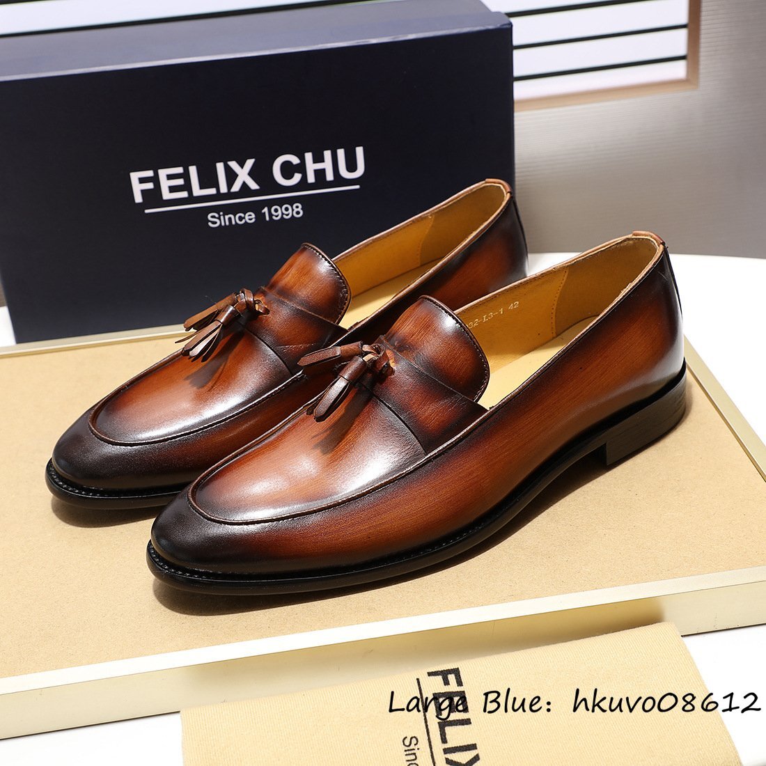定価9万超■牛革 メンズ ビジネスシューズ 職人手作り タッセルローファー 本革 レザーシューズ 紳士靴 新品 革靴 結婚式 ブラウン 24.5cm