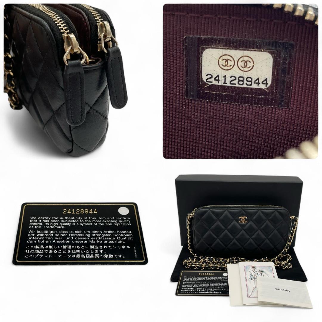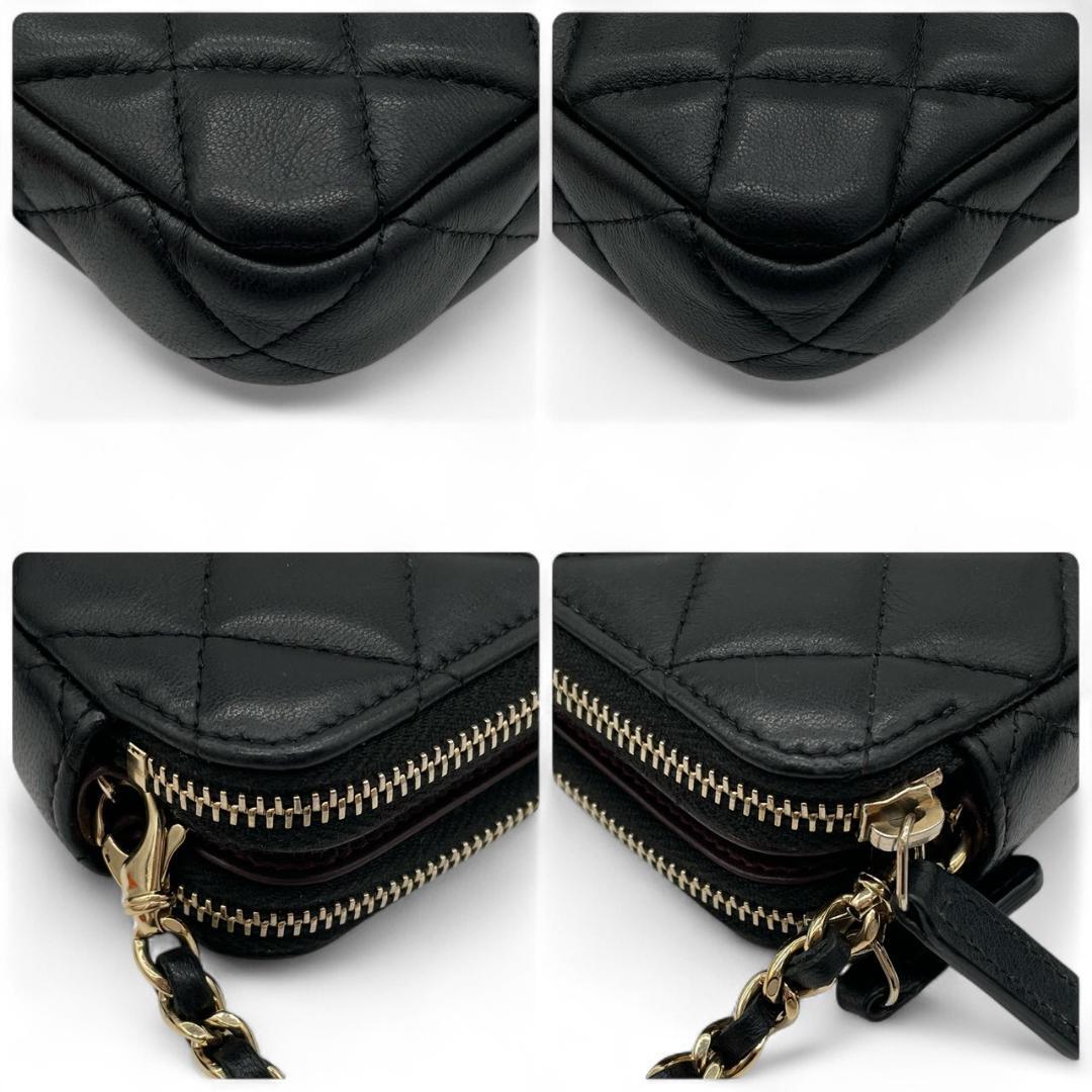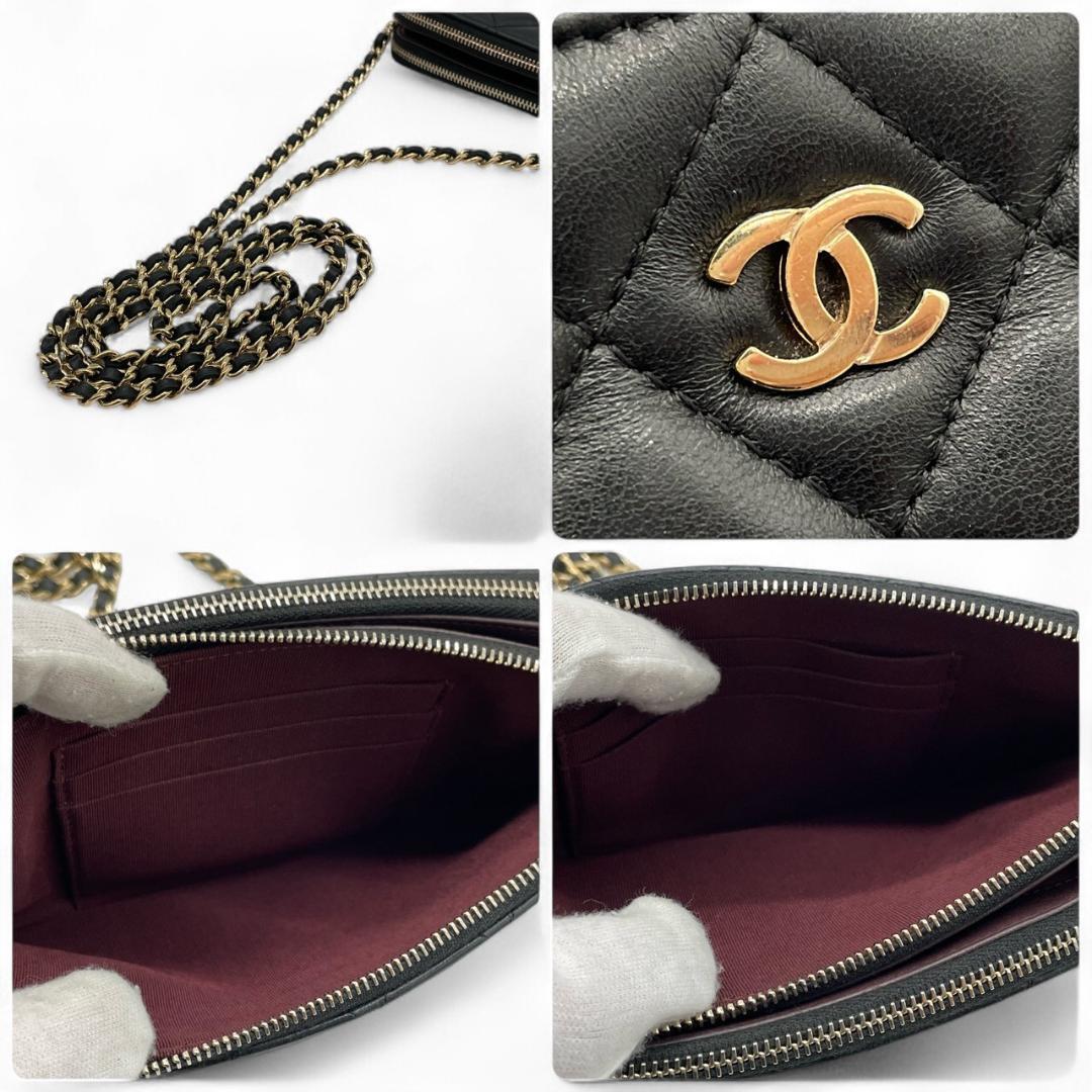★【ほぼ未使用】シャネル CHANEL ラムスキン マトラッセ チェーンウォレット ブラック ショルダーバッグ ゴールド金具 ココ★