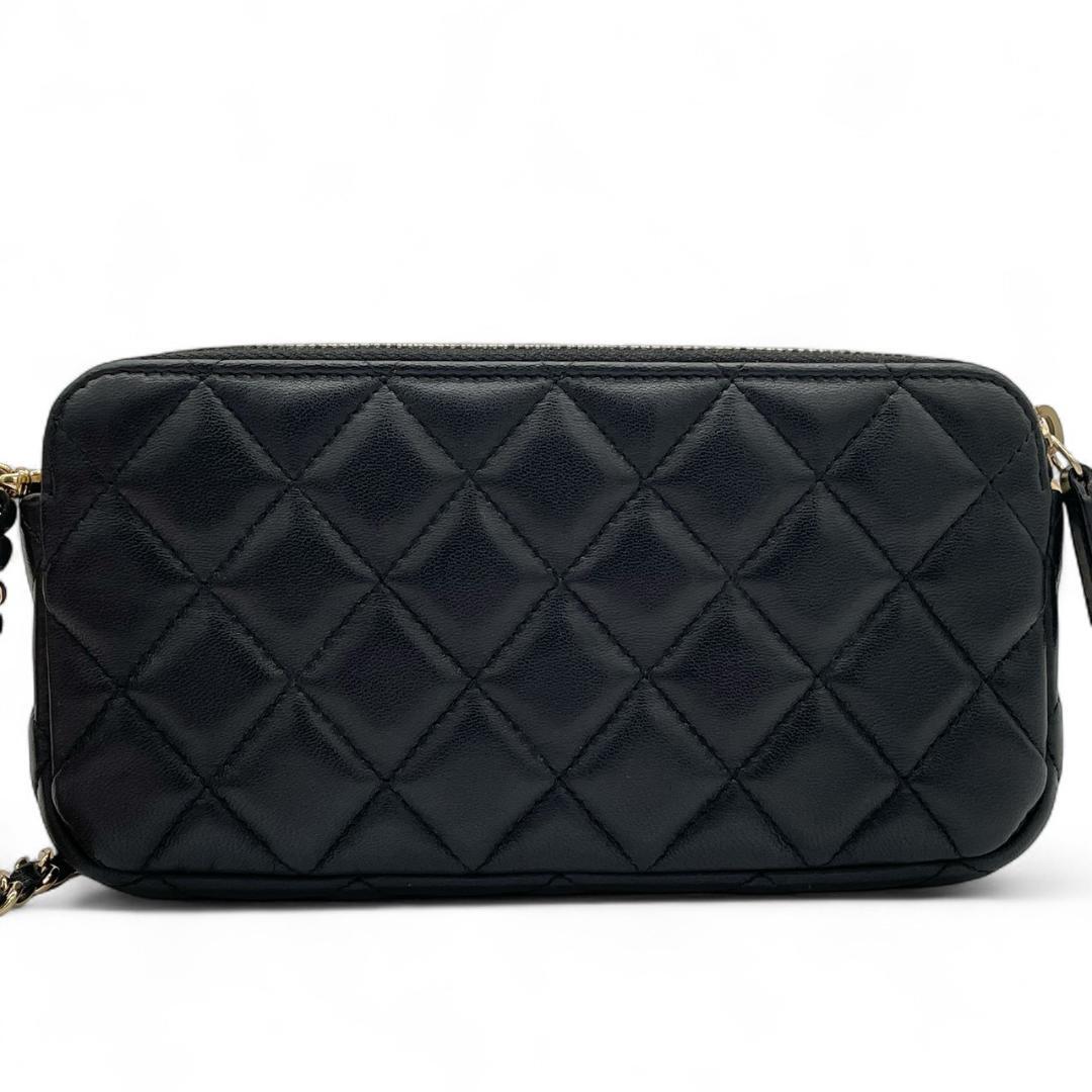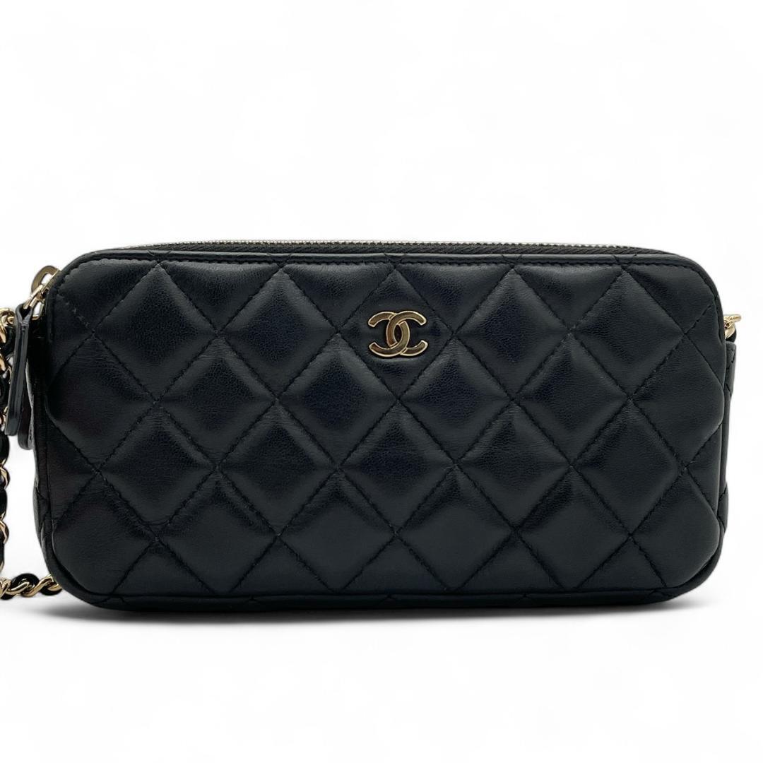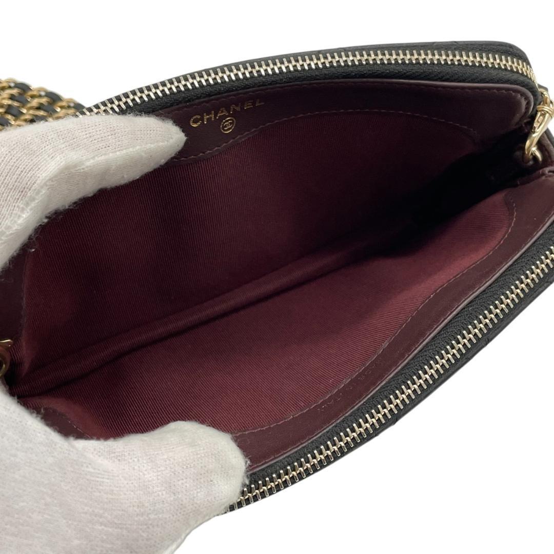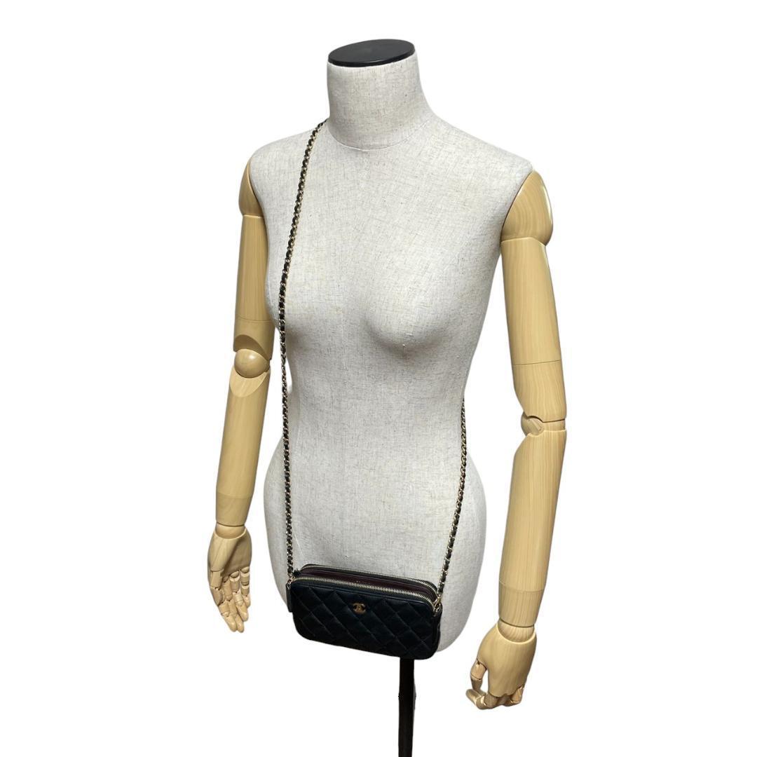 ★【ほぼ未使用】シャネル CHANEL ラムスキン マトラッセ チェーンウォレット ブラック ショルダーバッグ ゴールド金具 ココ★