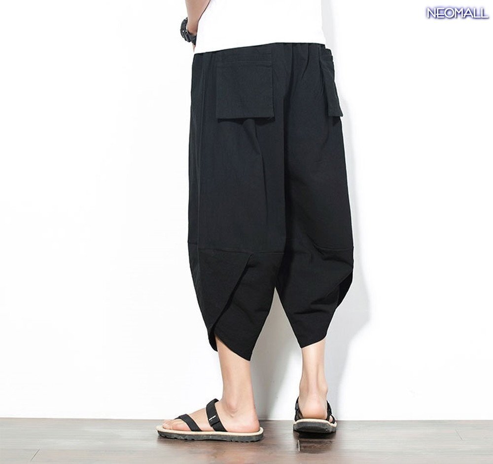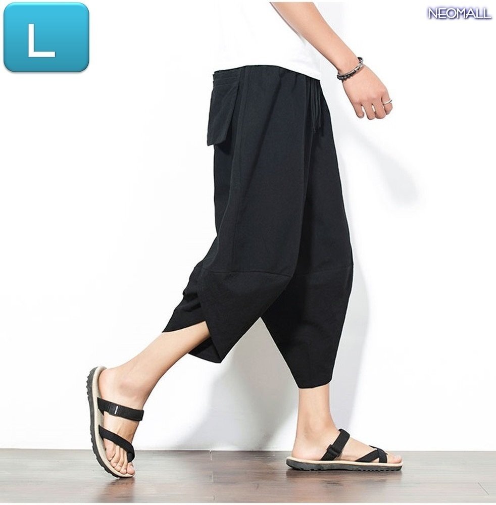 大人気☆メンズ サルエルパンツ ブラック L カジュアル ヒップホップ 7分丈 スウェット 無地 ポケット付 オールシーズン【339】