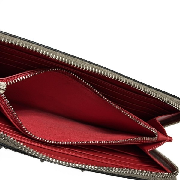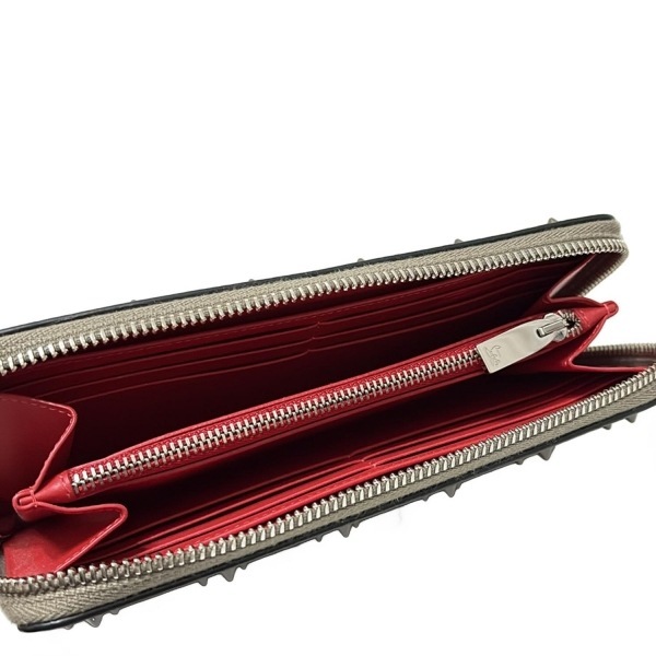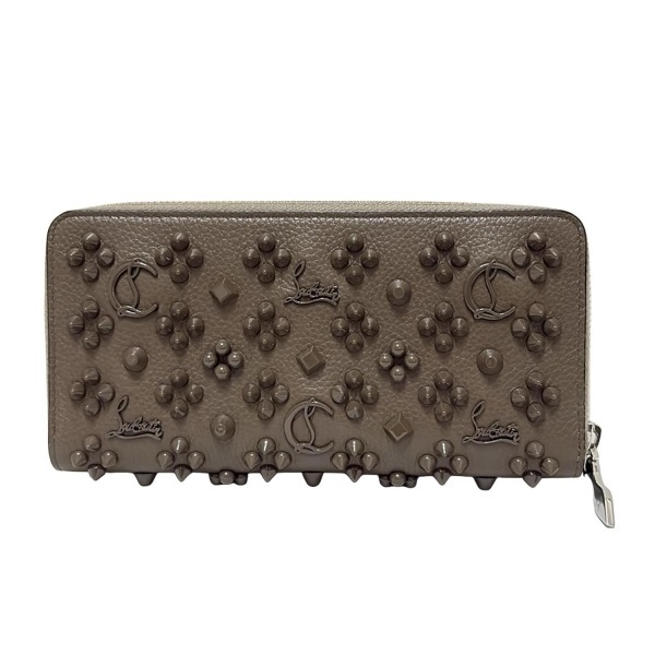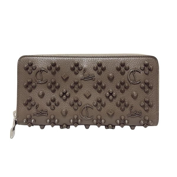 クリスチャンルブタン CHRISTIAN LOUBOUTIN 長財布 パネトーネ レザー グレーベージュ スタッズ/ラウンドファスナー 財布