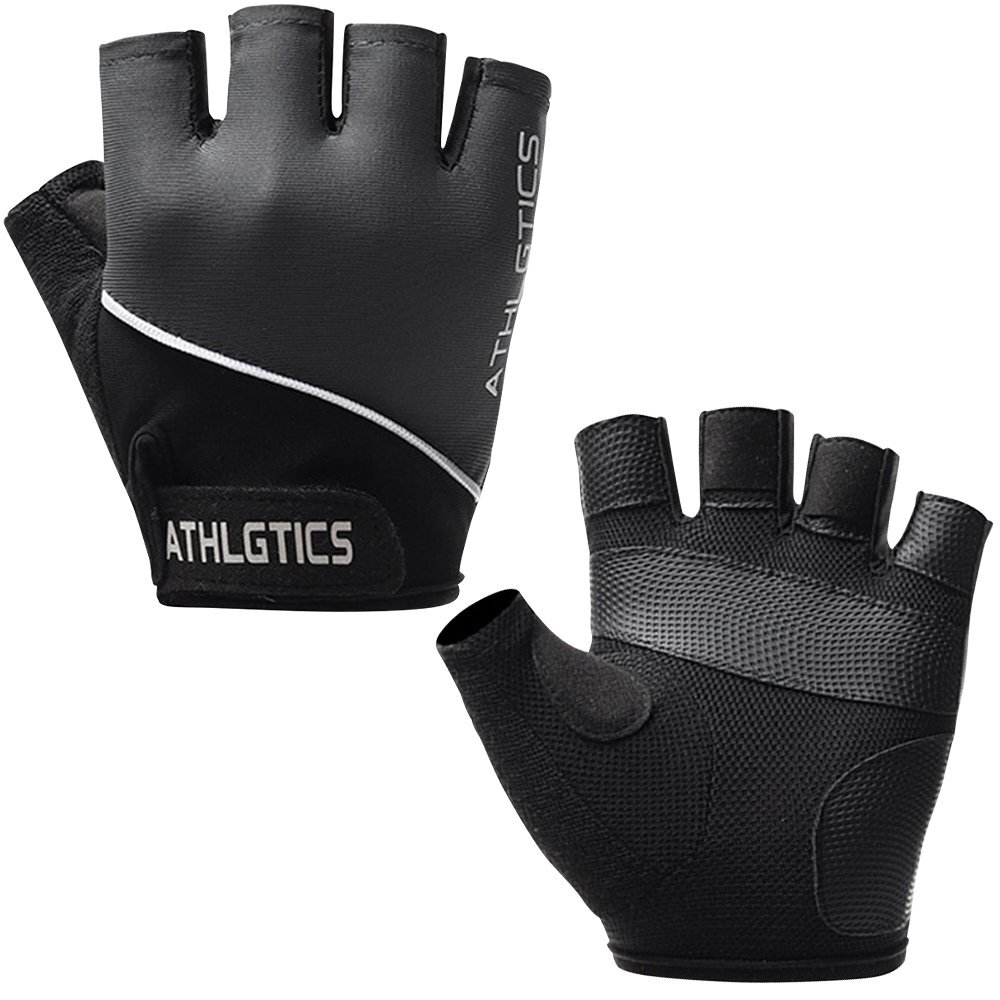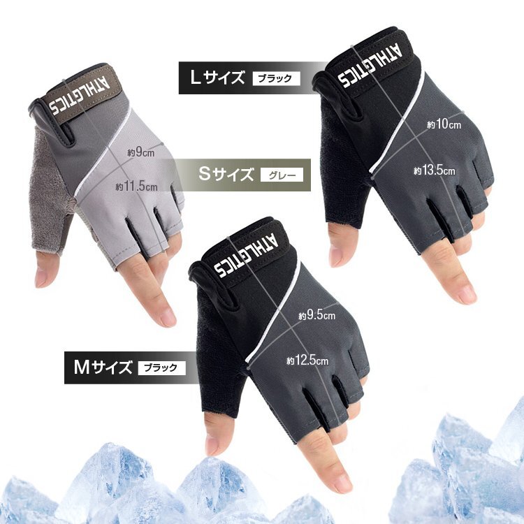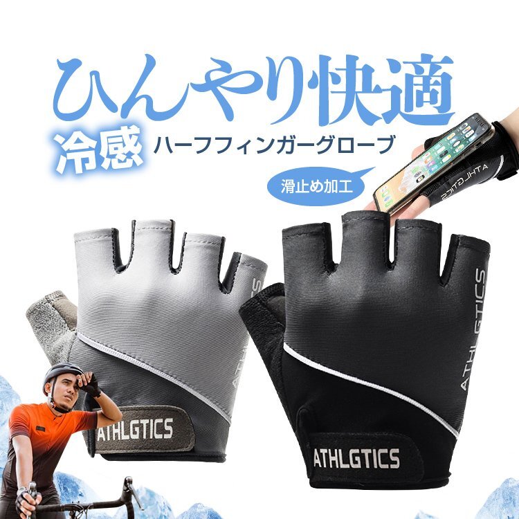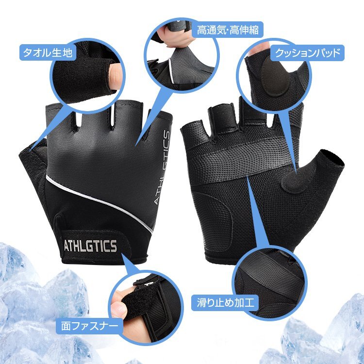 ◆ひんやり接触冷感 ハーフフィンガーグローブ サイクルグローブ 滑り止め加工 クッションパッド 高伸縮 吸汗速乾 指なし手袋 ジム エキササイズ 自転車 バイク 冷感手袋 男女兼用【Mサイズブラック色】ATHQG077