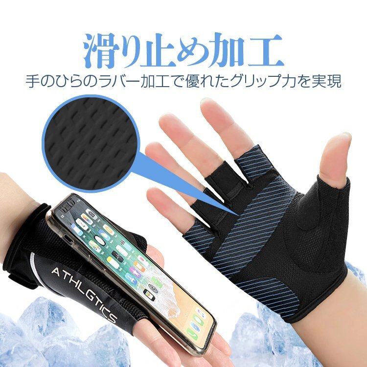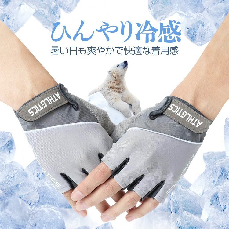 ひんやり接触冷感素材でトレーニングやスポーツに最適のハーフフィンガーグローブです。