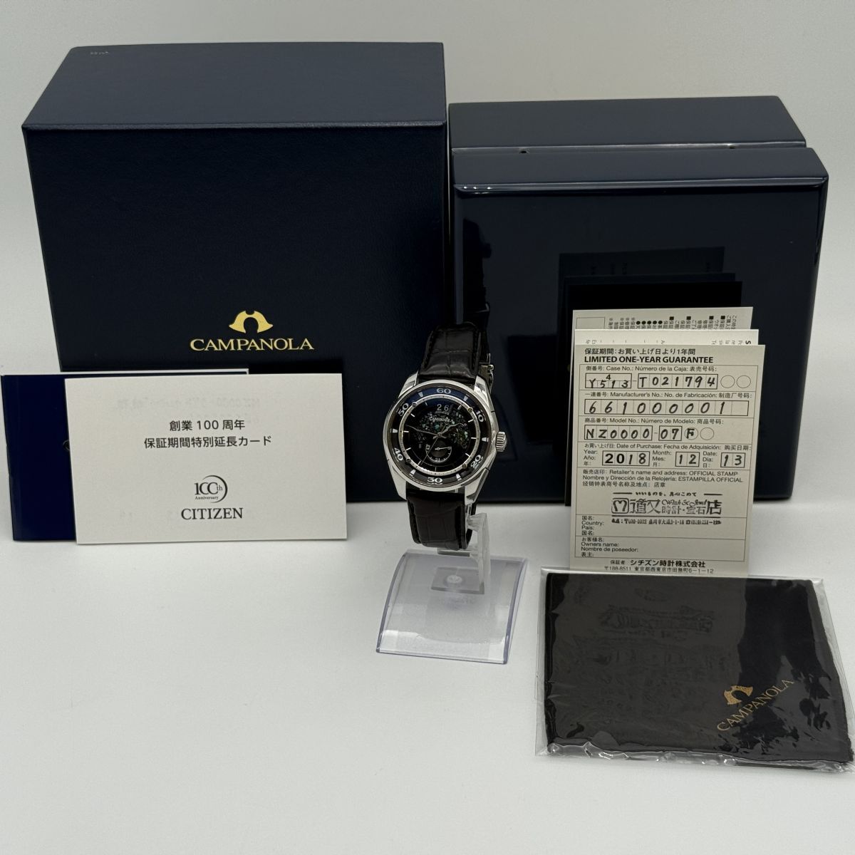 CITIZEN シチズン CAMPANORA カンパノラ NZ0000-07F 661000001 SS×革 AT 稼働品 黒文字盤 腕時計 定価80万円 箱・ギャラ付き