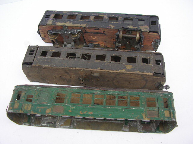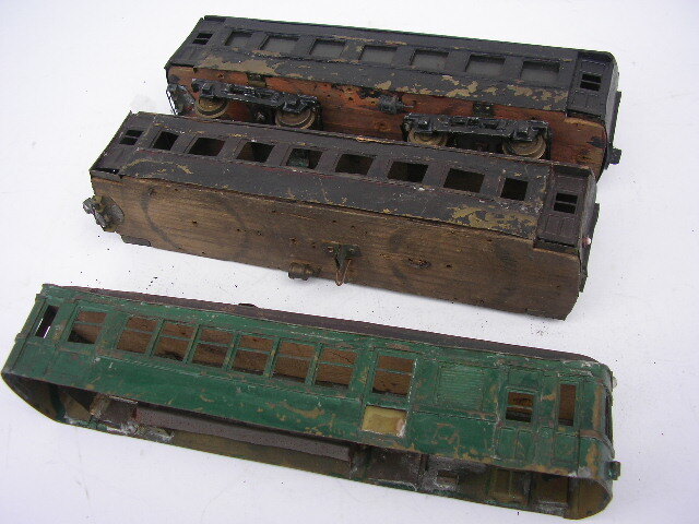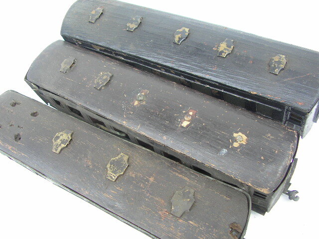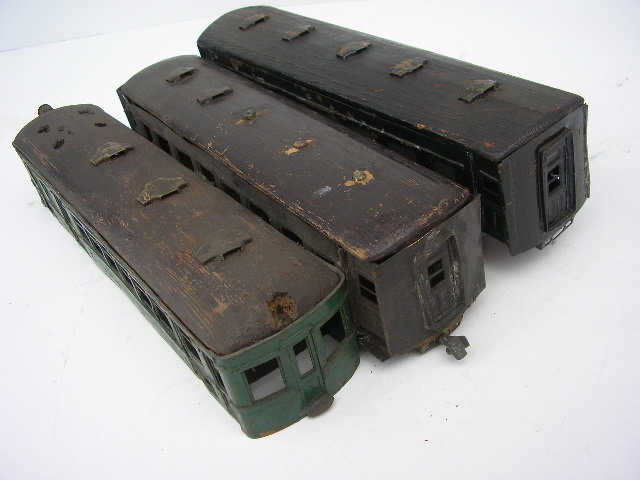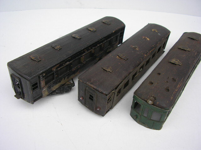 ☆Oゲージ 自作 客車 3車両 昭和30年代 ☆現状、不動です。 ☆破損欠損多数ありです。 ☆金属部分 ボディ 車輪等 ☆木製部分 屋根 床板 ☆全長 約270mm ☆時代傷み、破損ありです。 ☆ジャンク品 ☆お取置きは、不可です。 ☆ゆうパック 80サイズ予定です。 |