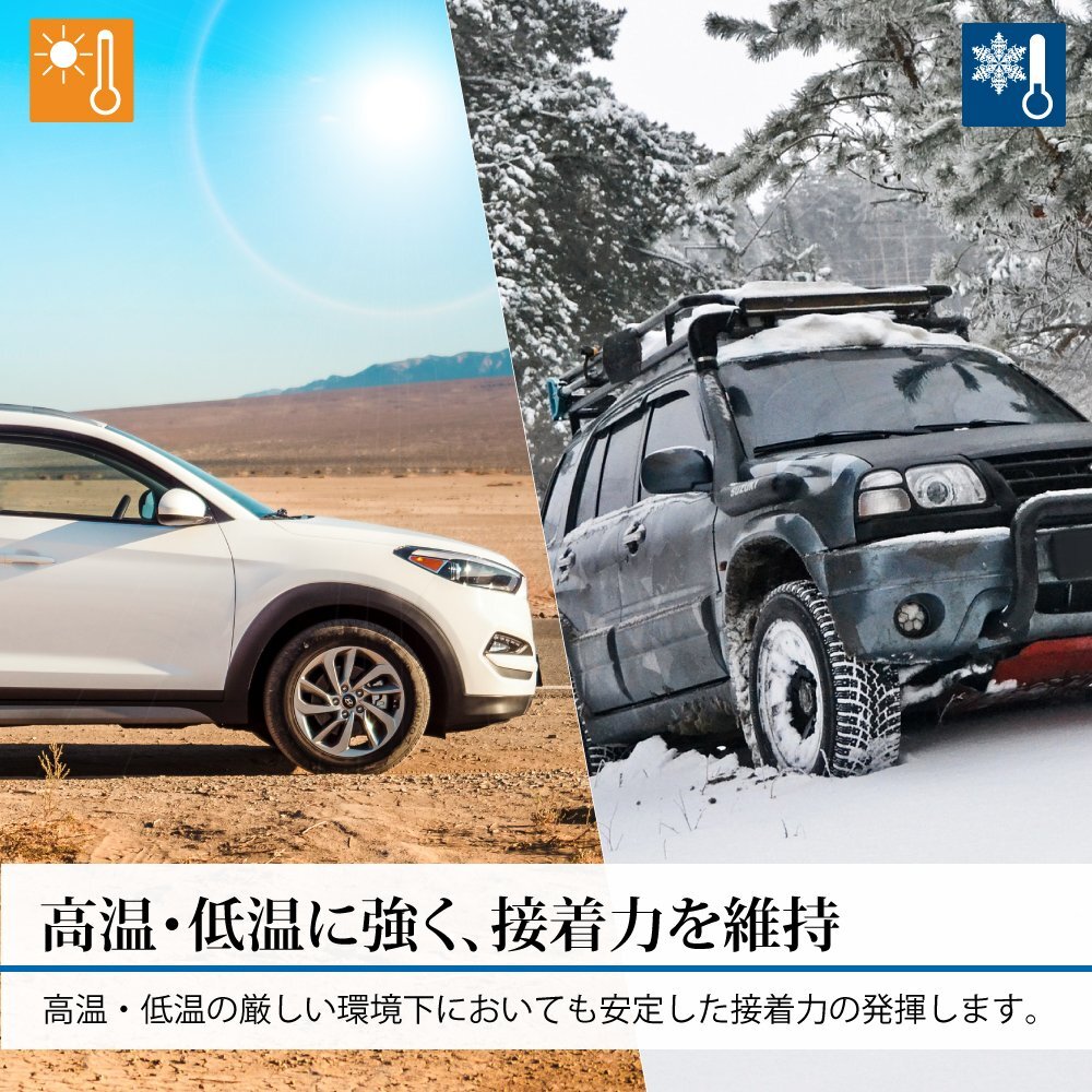 | ・バンパーモール、バンパープロテクターの接着 ・透明サイドバイザーの接着 ・各種内外装部品やアクセサリー等の接着 ・ドラレコやモニターなどの車内アクセサリーの取り付けに ・作業灯やセンサーライトなどの取り付けに ・ポストや壁掛けフックなどの取り付けに | |