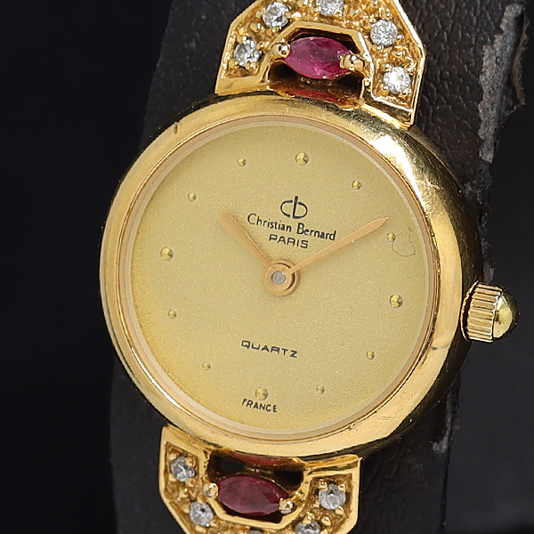 1円 クリスチャンベルナール QZ ゴールド文字盤 レディース腕時計 6294200 11APT KMT