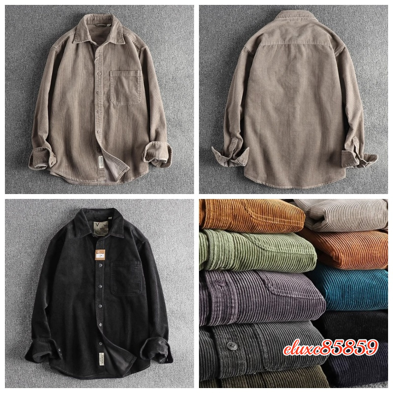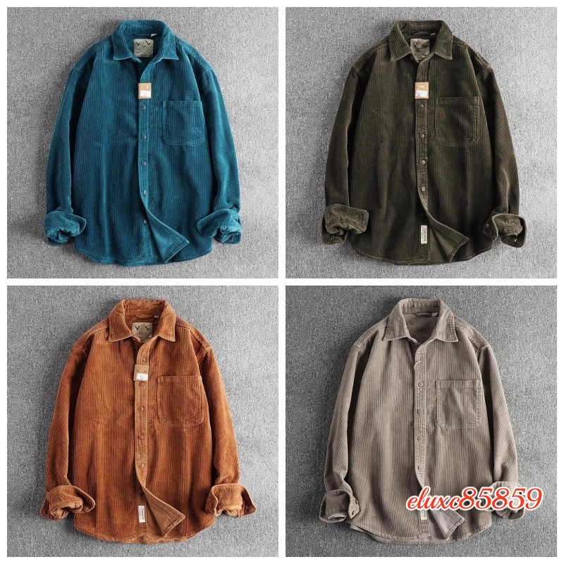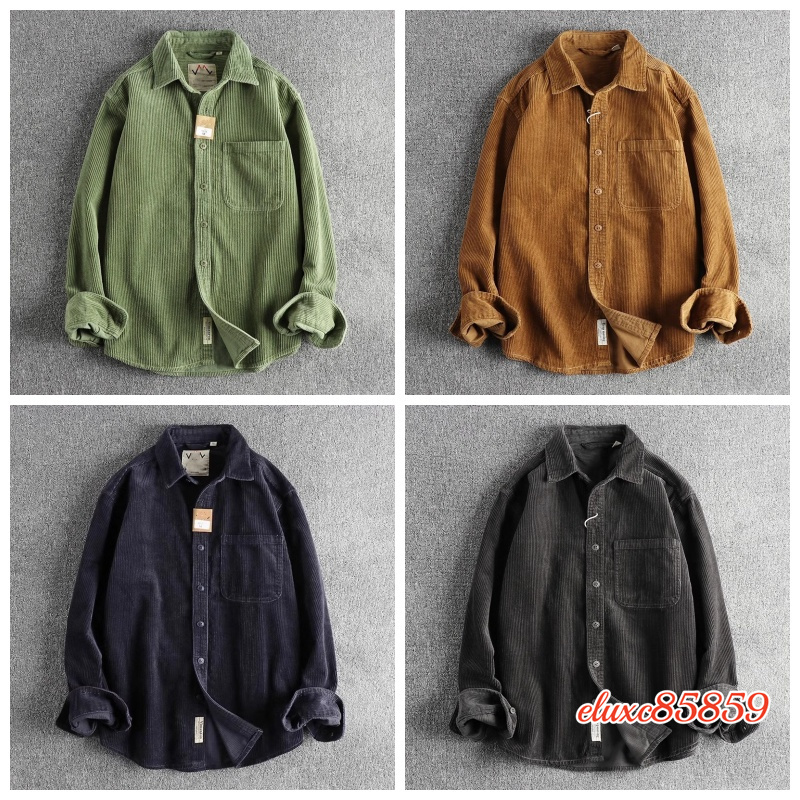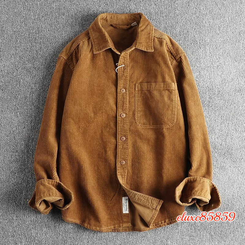 秋冬新品 長袖シャツ メンズ ワークシャツ コーデュロイ ミリタリー シャツジャケット アメリカン カジュアル S~4XL選択 カーキ