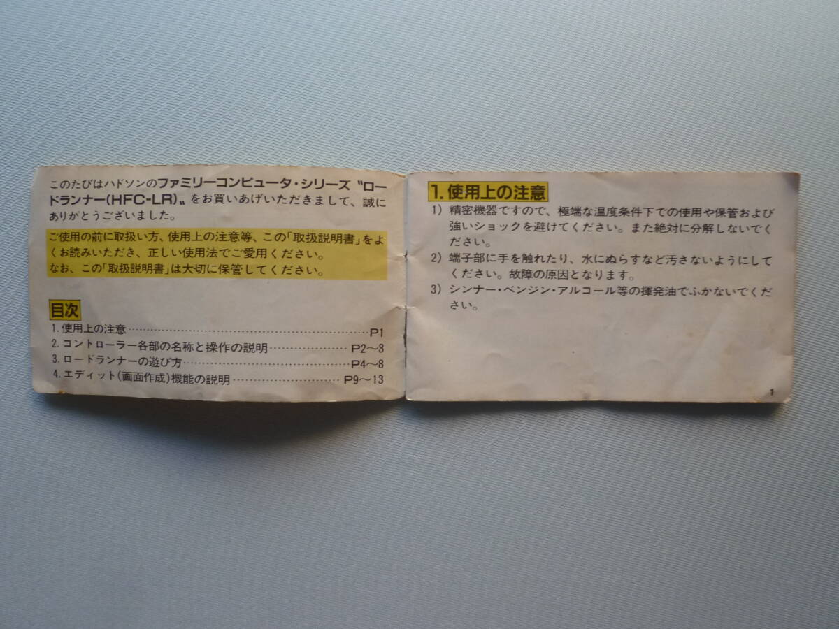 ロードランナー 取扱説明書です。写真のように状態は良くないです。